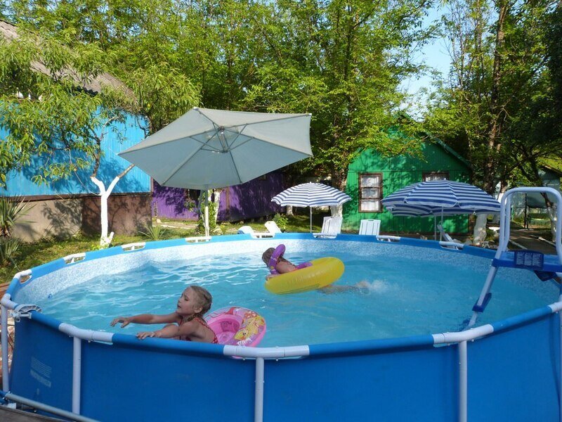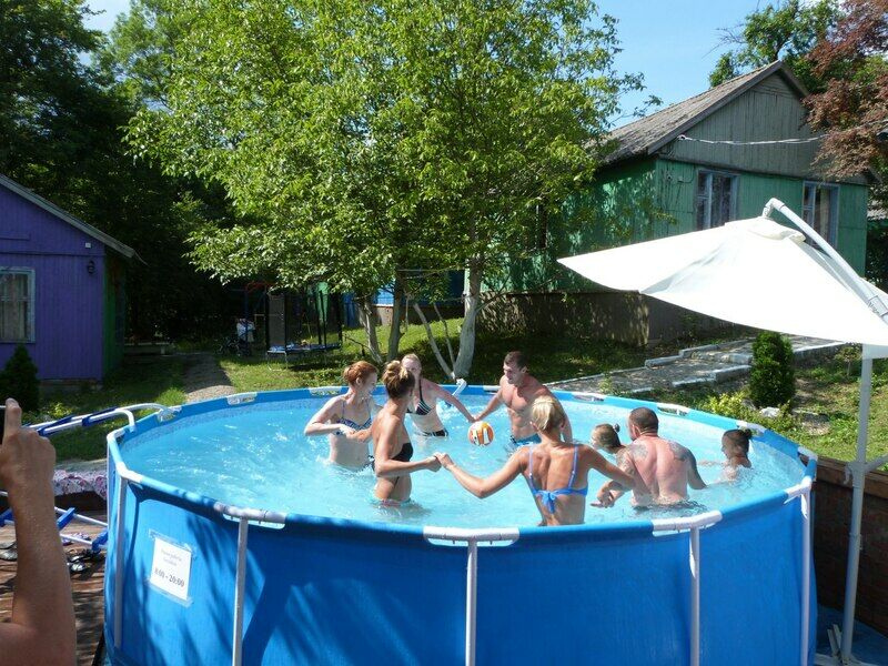 В теплое время года на базе отдыха устанавливается каркасный бассейн среднего размера для взрослых и детей.