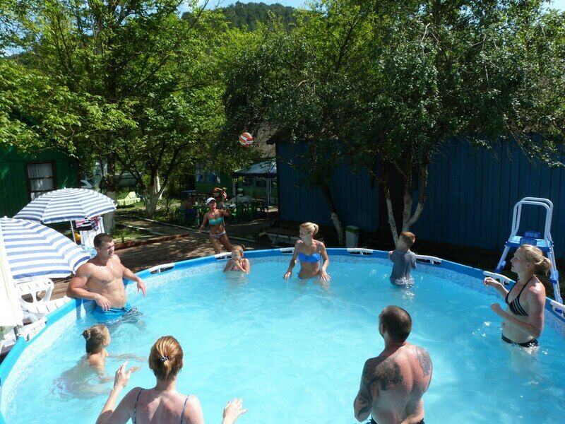 Тип бассейна: открытый бассейн, каркасный бассейнРядом с бассейном: шезлонги, зонтикиВ теплое время года на базе отдыха устанавливается каркасный бассейн среднего размера для взрослых и детей.