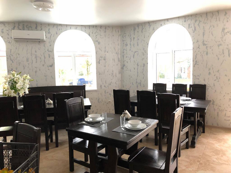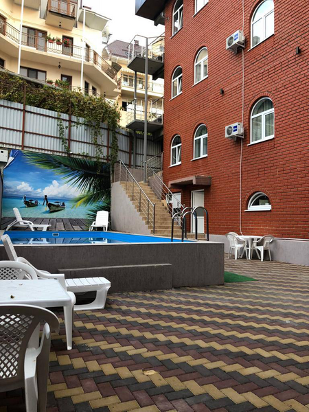 На территории работает столовая с обеденным залом, а на крыше —уютный ресторанчик с вкусной кухней. К услугам отдыхающих — небольшой бассейн с прохладной водой, караоке, парковка. В гостевом доме регулярно проходят развлекательные мероприятия для детей и взрослых. Малышам администрация предоставляет прогулочные коляски и стульчики для кормления. В 15 минутах ходьбы — галечный оборудованный пляж.
