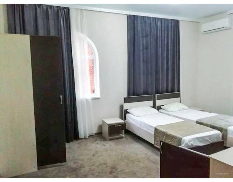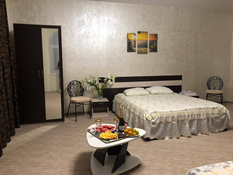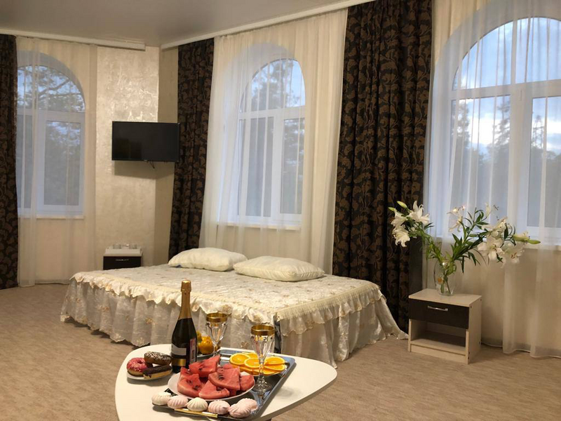 Кирпичное четырехэтажное здание отеля разместилось на одной из главных магистралей поселка — улице Победы. В распоряжении гостей однокомнатные и двухкомнатные номера с удобствами. Везде предусмотрен санузел с душем, кондиционер, есть электрочайник, телевизор с плазменным экраном, фен.