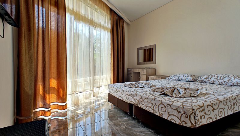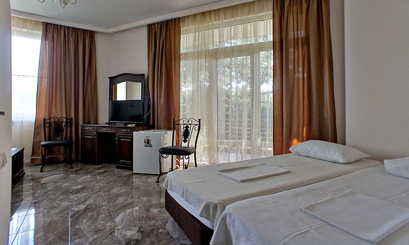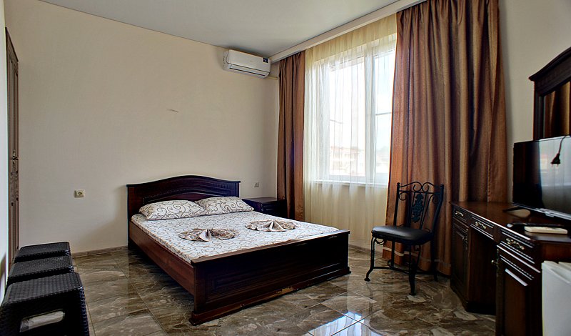 Для проживания предлагаются номера разного уровня вместимости и категории. Все они выполнены в едином стиле, спокойных тонах. В каждом обустроена необходимая мебель, удобные спальные места, а также современная техника. Для удобства проживающих номера оснащены телевизором с плоским экраном и кондиционерами. Уборка номеров производится регулярно в соответствии с графиком.