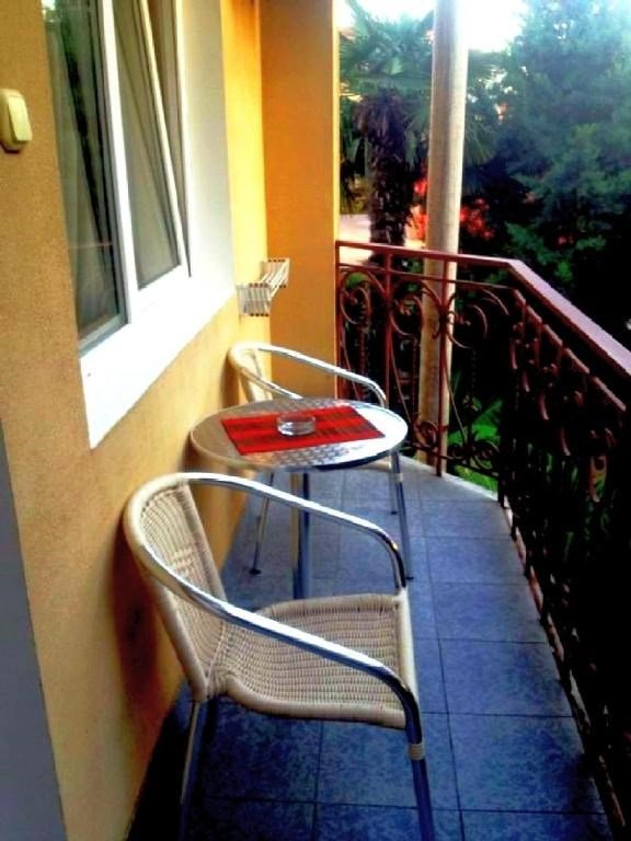 В номере двух спальная кровать и дополнительное место тахта. В номере имеется холодильник, набор посуды, телевизор ,кондиционер, балкон, туалетные принадлежности. Все удобства в номере.Услуги и удобства