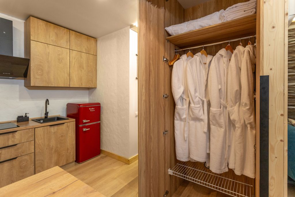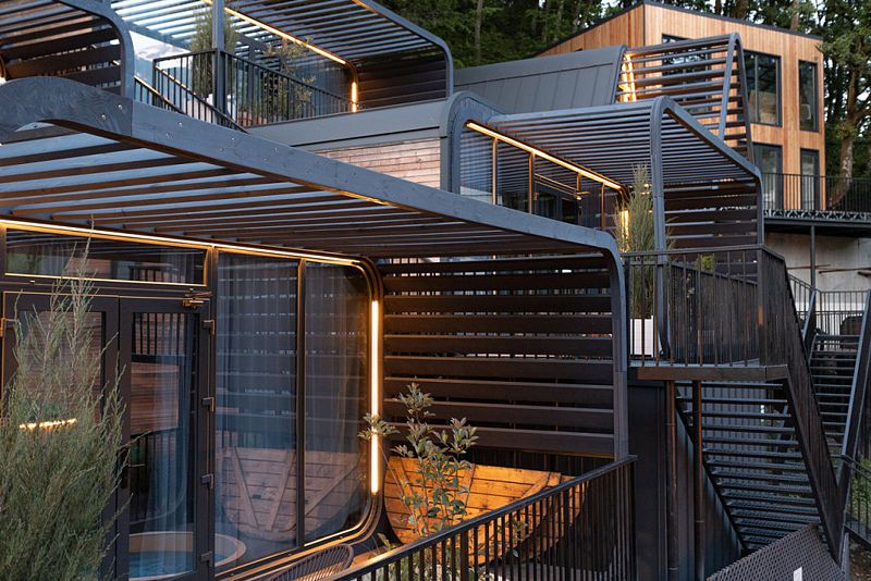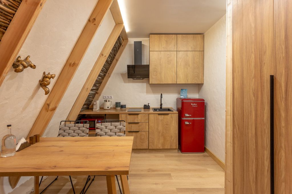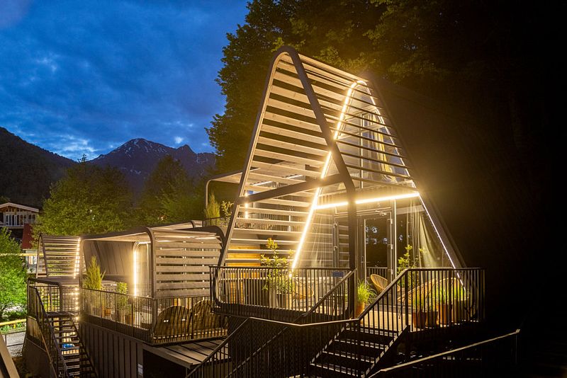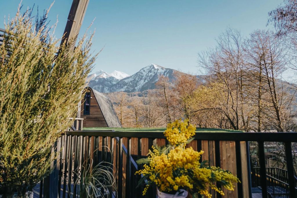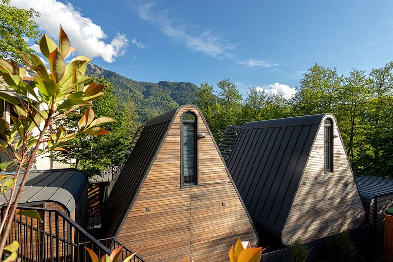 Из каждого варианта открывается потрясающий вид на горы, которым можно любоваться с индивидуальной террасы. Есть варианты с купелью и джакузи, включёнными в стоимость проживания.