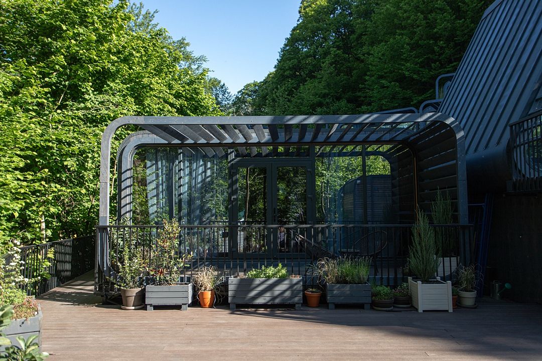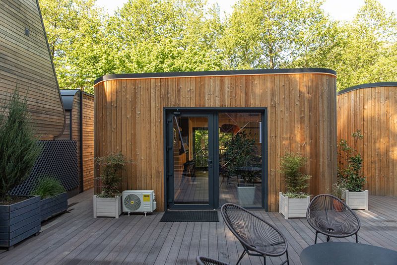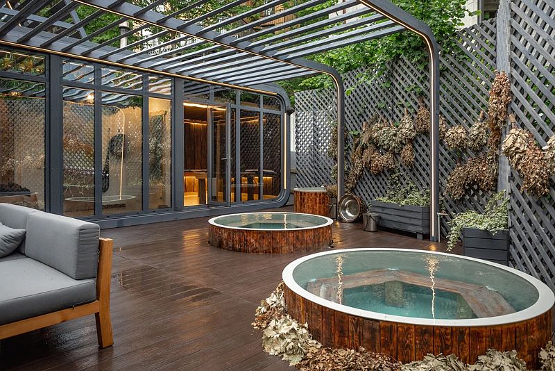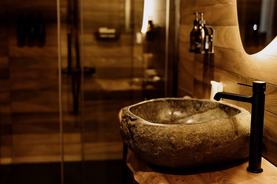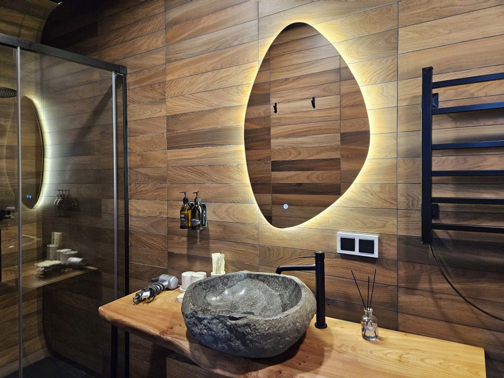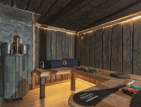 - парная из натурального дерева с панорамным видом на горы, физиологически правильной эргономикой и полезным мелкодисперсным паром;