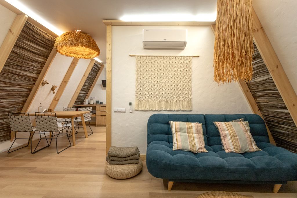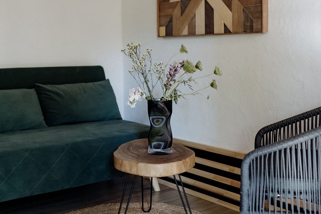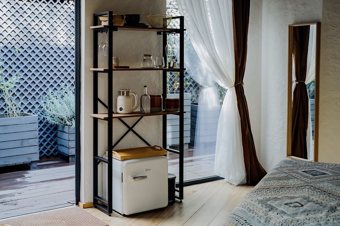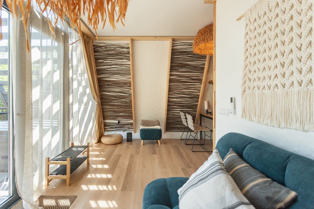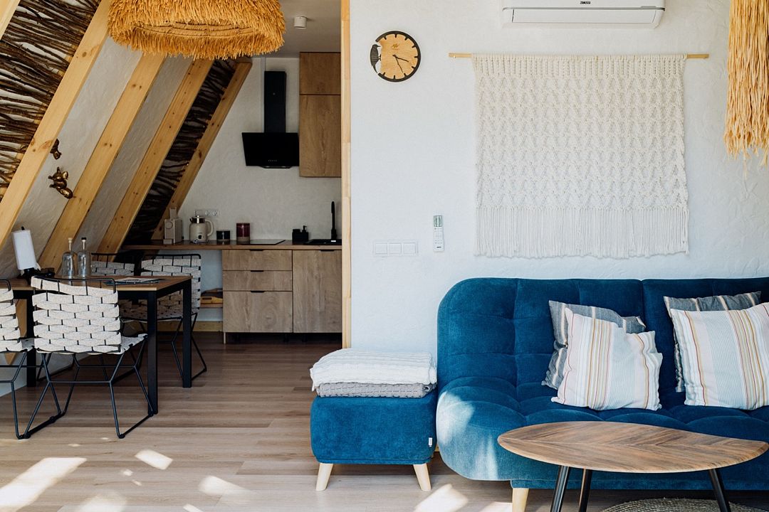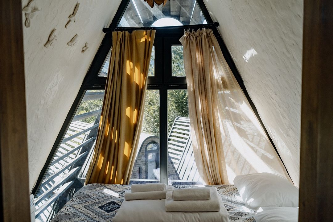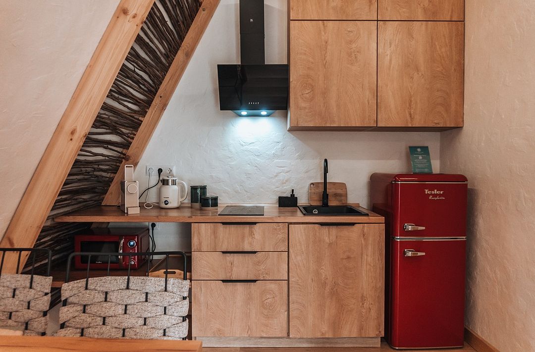 Единое пространство, объединяющее спальную зону и лаунж, в сочетании с доступным расположением на территории эко-отеля и отсутствием ступеней, делают Горный дом особенном комфортным для гостей с меленькими детьми или для гостей с ограниченной подвижностью.