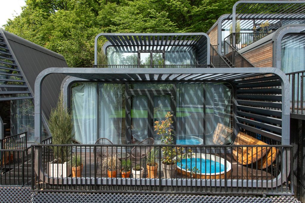 Все дома со своей просторной террасой, на которой вас ждет всесезонная купель, доступная вам в любой момент вашего пребывания, и кресла, откуда открывается панорамный вид на горные вершины.
