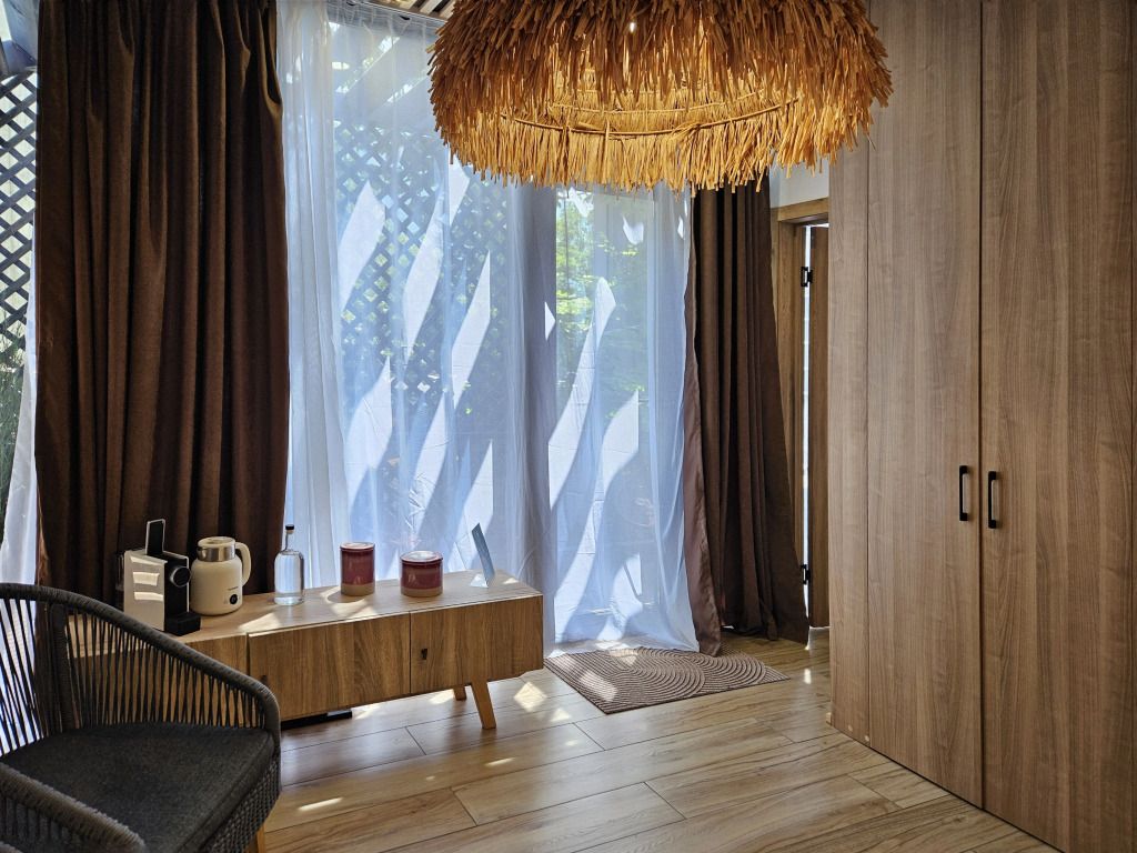 Горное бунгало ПРЕМИУМ — это эксклюзивный отдых с особым комфортом. Самое видовое и максимально укомплектованное бунгало с лаунж зоной, светлой спальней и персональной купелью на террасе, вдали от посторонних глаз, идеально подойдет для романтических событий или восстановления сил в уединении и заботе.