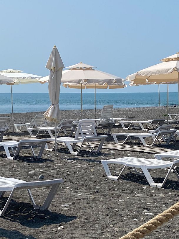 Красота природы повсюду: территория отеля утопает в зелени — цветущие сады, ухоженные газоны и просторные лужайки создают атмосферу ботанического рая. Комфорт обеспечен на каждом шагу: удобные лежаки и зонтики расположены так, чтобы вы могли выбрать, провести время на солнце или укрыться в прохладной тени.