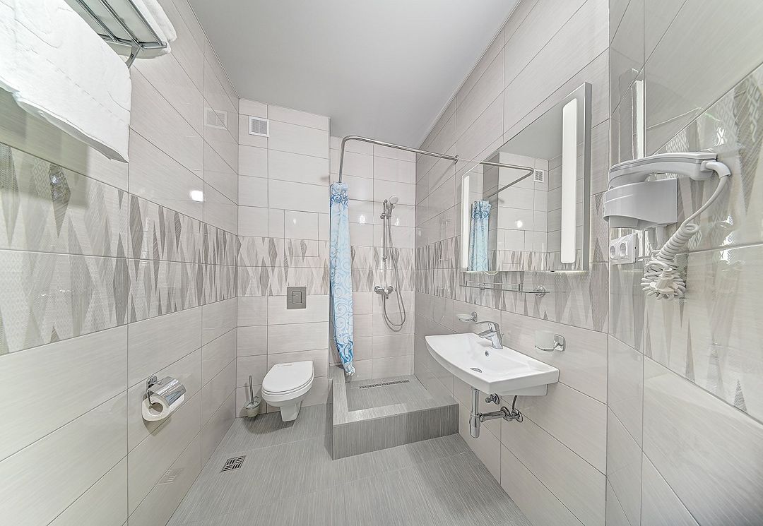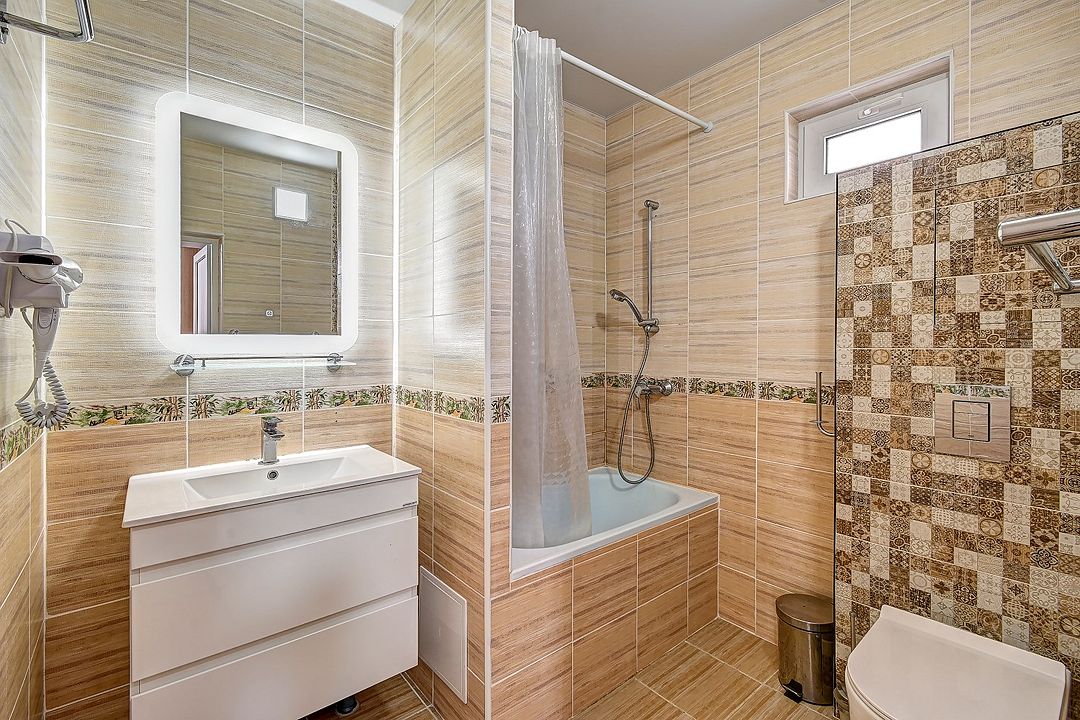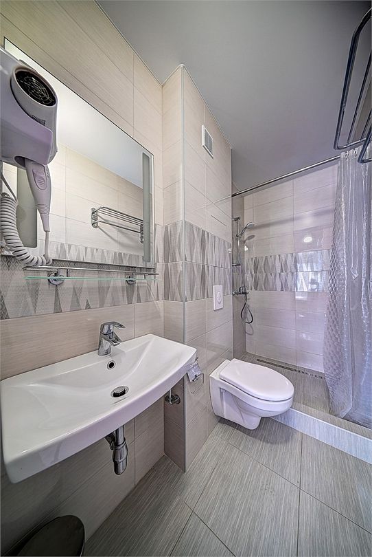 В распоряжении гостей ванная комната, с феном и косметическими принадлежностями, а также с двумя балконами, выходящими из разных комнат.