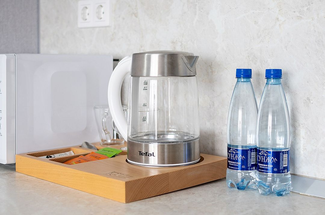 Номер оснащен системой индивидуального кондиционирования, рабочим столом, беспроводным интернетом WI-FI, принадлежностями для приготовления чая, холодильником, электронным сейфом и телевизором с плоским экраном и Smart TV.