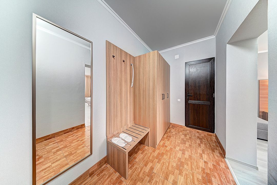 В номере имеется вместительный шкаф для одежды и багажа с вешалками и зеркало.
