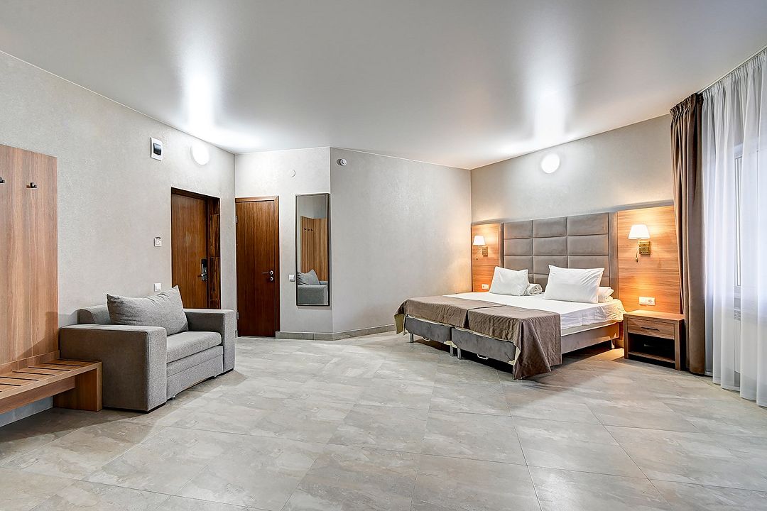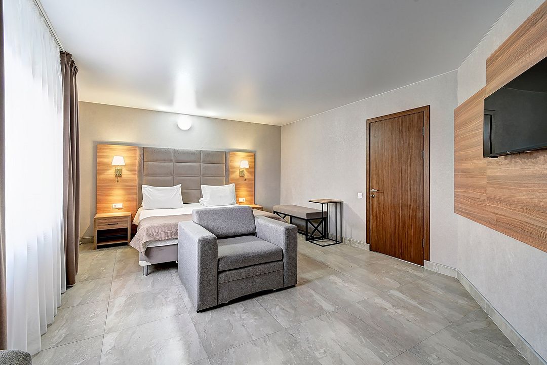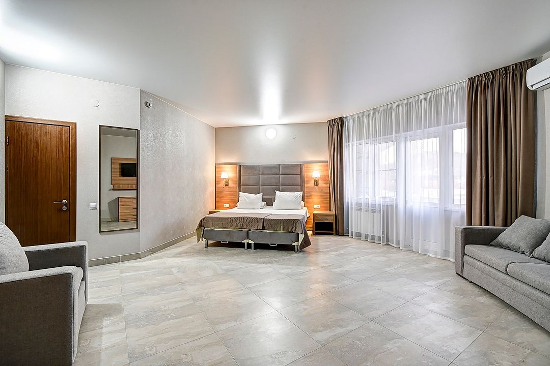 Номер Люкс площадью 60 кв.м с двумя комнатами и санузлом.