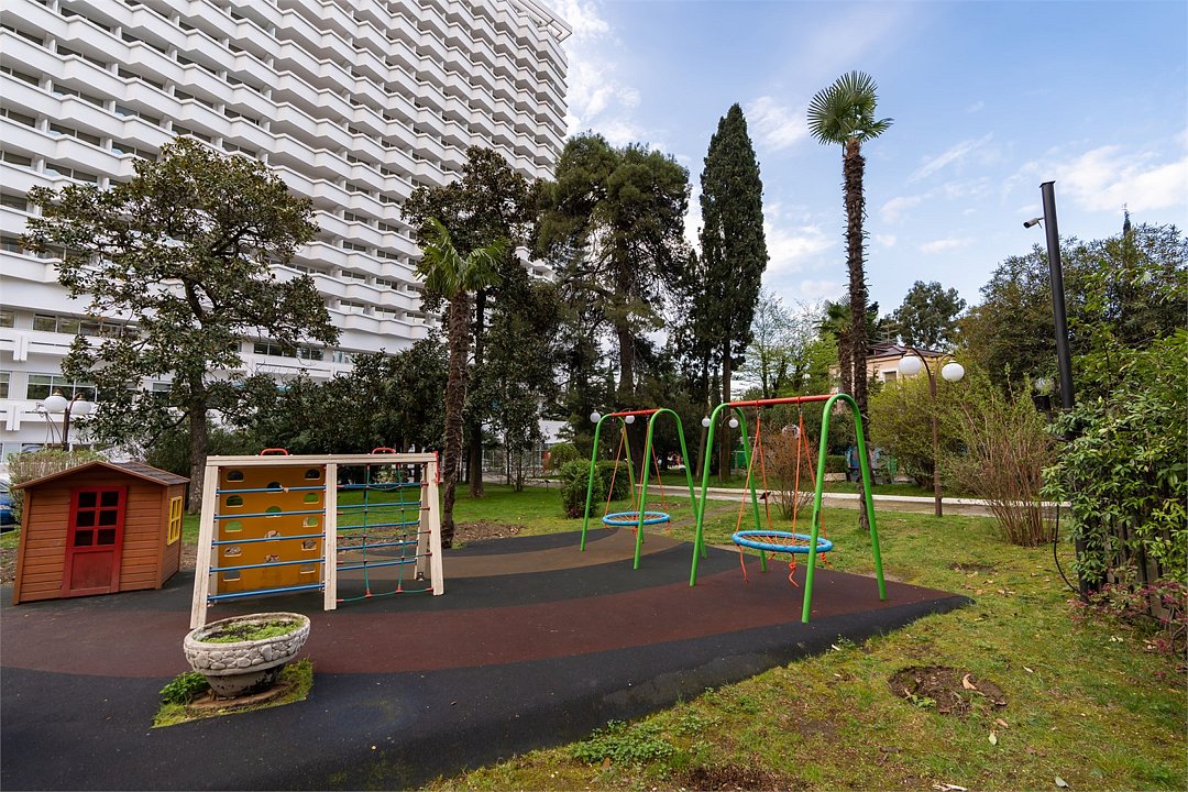 Путешествие в одиночкуИюльский СочиУдачное расположение отеля, максимально близко к морю, от набережной отделяет парк Фрунзе, не далеко остановка общественного транспорта. Территория маленькая, но очень ухоженная. Есть детский и спортивный уголок, хорошая пак ковка. Брала завтраки в отеле, несколько раз обедала в кафе на территории, все вкусное и свежее.