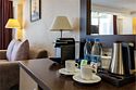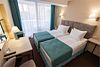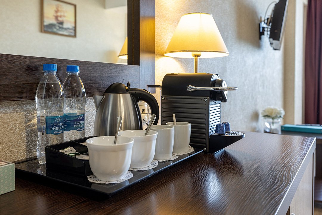 Представляем Вашему вниманию номера, укомплектованные специально для гостей, прибывших в Сочи по бизнес необходимости. У нас огромный опыт в организации и проведении мероприятий различного уровня и мы знаем, как окружить комфортом каждого гостя. Особенностью этих номеров является чудесный вид, открывающийся из каждого номера данной категории, а также дополнительные аксессуары для более комфортного пребывания . Номер оформлен в пастельных тонах, площадью 17 м2. Номер отлично подойдет для одноместного комфортного размещения в командировке. Но, если возникнет необходимость двухместного проживания, то кровати для вашего удобства мы можем объединить или наоборот установить их раздельно. Все элементы дополнительной комплектации подобраны таким образом, чтобы удовлетворить потребности в бизнес поездке, и вам не приходилось бы везти с собой чемодан мелочей (от пилочки для ногтей и зарядного устройства для всех гаджетов до кофемашины и отпаривателя для одежды, а также приятным бонусом после активного дня станет аромалампа с успокаивающими маслами, способствующая спокойному и приятному отдыху.) Комплименты от отеля вас удивят и порадуют, а симпатичные сувениры можно увезти с собой в память о приятной поездке в Сочи. Каждый номер укомплектован двумя прикроватными тумбами, шкафом для одежды, рабочей зоной, состоящей из письменного стола и стула, оснащен настенной плазменной панелью, с широким выбором спутниковых ТВ каналов, сплит-системой для контроля температуры номере, электронным сейфом, светонепроницаемыми шторами, удобным креслом, пледами, санузлом с душевой кабиной. Каждый номер укомпклектован кофе-машиной. Все номера Sea Galaxy Hotel Congress & Spa оснащены междугородней и международной телефонной связью, спутниковым телевидением, wi-fi. Каждый день в номерах производится уборка, белье и полотенца меняются один раз в три дня.Услуги и удобства