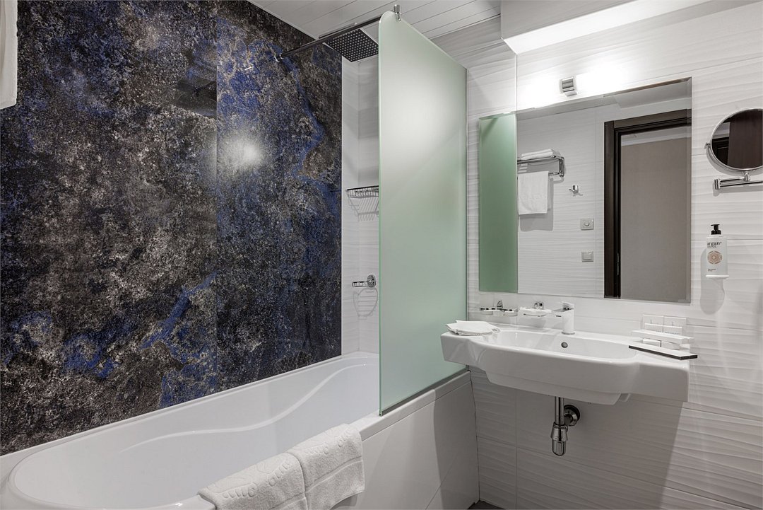 Гармоничная атмосфера со звездным небом и «блэкаут» жалюзи создадут подходящие условия для отдыха и расслабления. Вы сможете просто отдохнуть или помедитировать.