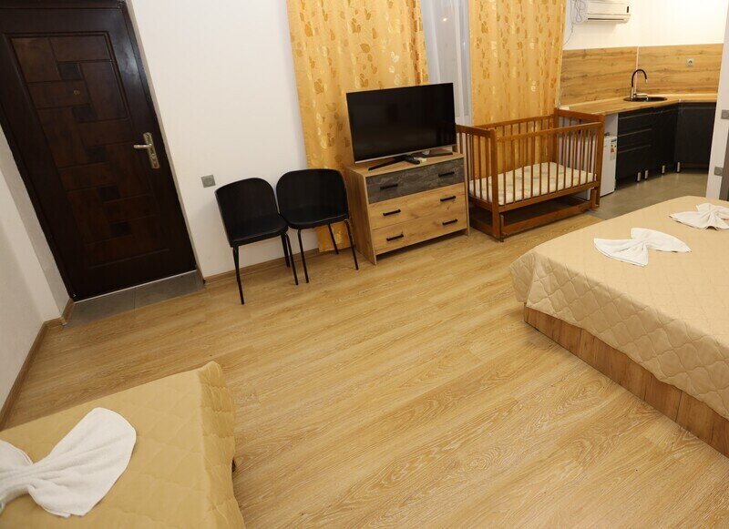 В каждом номере гостевого дома есть санузел, кондиционер и плазменный телевизор. Также предоставляется Wi-Fi для удобства гостей.
