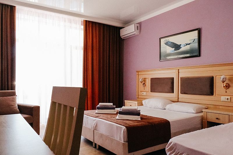 Каждый номер оснащен удобствами. В вашем распоряжении холодильник, кондиционер, ЖК-телевизор, собственная ванная комната с необходимыми принадлежностями и феном. Также номера обустроены комфортабельной мебелью.