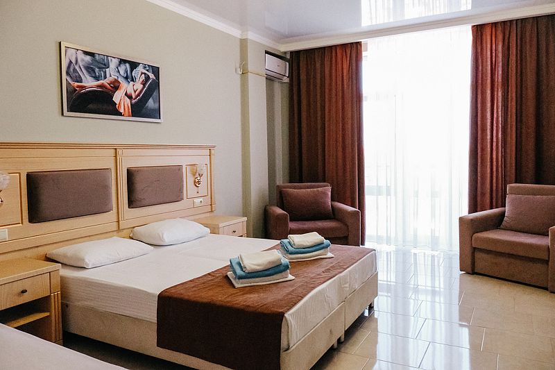 Отличительной особенностью отеля является наличие балкона в каждом номере, где можно наслаждаться видом, солнцем или просто посидеть в компании.