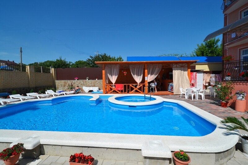 Путешествие с семьейОтличный отдых!Бронировала 102 номер аж в феврале,делала предоплату 10 тысяч,боялась конечно,но мои опасения были напрасны.Отдыхали с 26 июня по 10 июля 2017 года.Остались очень довольны.Хозяева замечательные,всегда приветливые.Каждое воскресенье была анимация для детишек,а так же их родителей) А после был вкуснейший шашлык,который готовил муж Кристины.Сервис отличный.В столовой еда по домашнему,большой выбор блюд.Персонал всегда с улыбкой на лице.До моря идти минут 10 максимум с ребенком в коляске.Бассейн на территории спасал от жары и когда море было холодным.В общем,теперь мы к Вам.Спасибо,Оксане,Кристине и всему персоналу.Отдых удался.