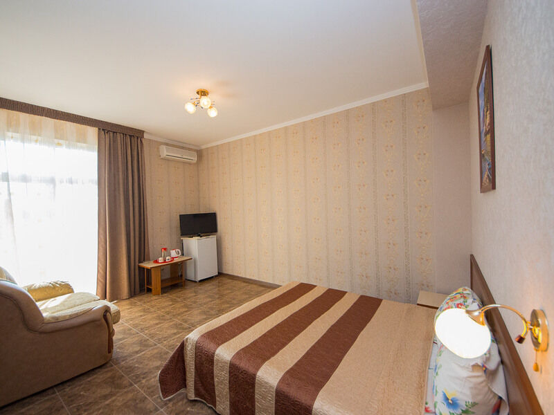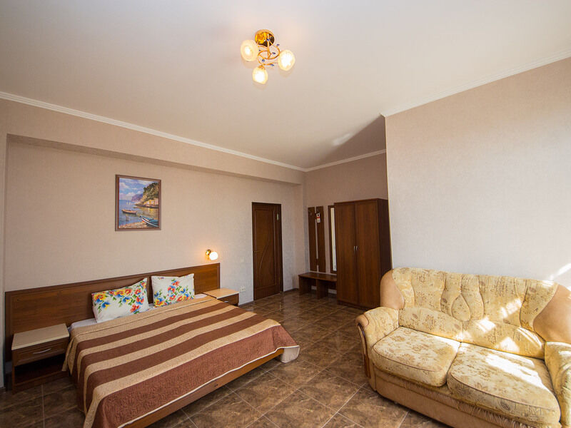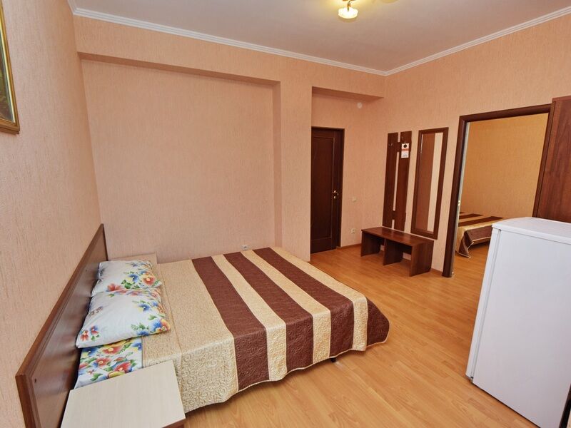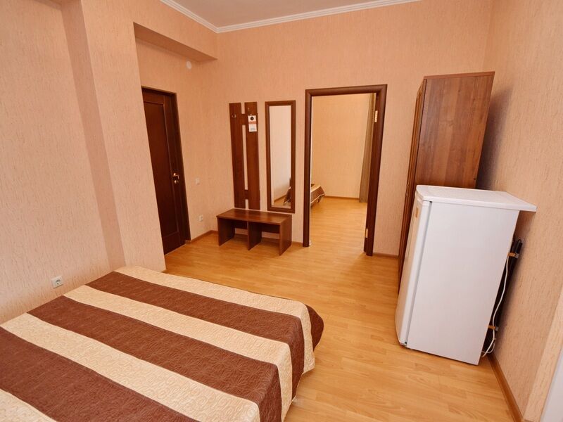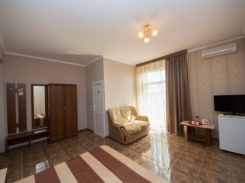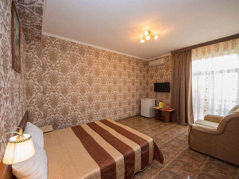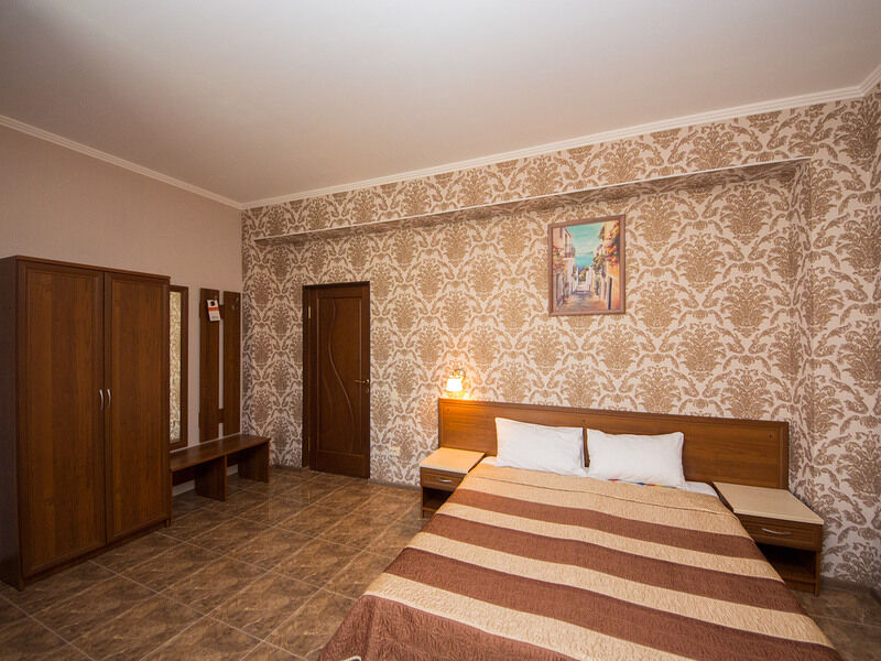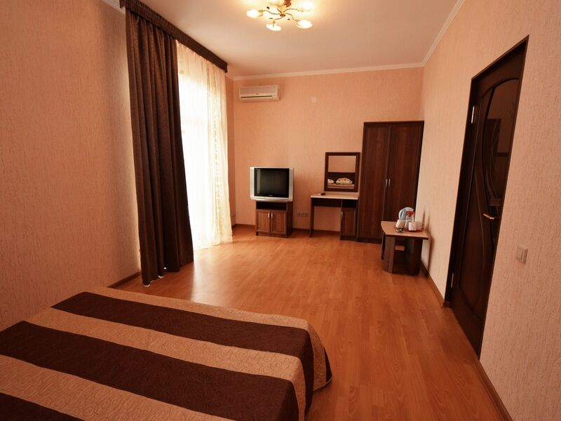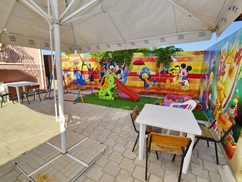 Небольшое четырехэтажное здание гостевого дома вмещает в себя до пятидесяти отдыхающих. Для гостей приготовлены комфортные одно-, двухкомнатные номера, оснащенные всем необходимым – удобной мебелью, бытовой техникой, кондиционерами и собственной ванной комнатой. В распоряжении гостей открытый бассейн со специальным детским отделением и небольшой зоной отдыха, сеть wi-fi на всей территории отеля. Для детей оборудована игровая площадка, регулярно работают аниматоры, при необходимости можно взять напрокат детскую кроватку.
