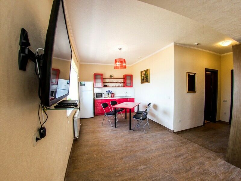 Современное здание гостевого дома разместилось на небольшой закрытой и охраняемой территории, 15 комфортабельных номеров категории Стандарт, Студио и Апартаменты, предназначенные как для размещения больших семей, так и одиночных путешественников.