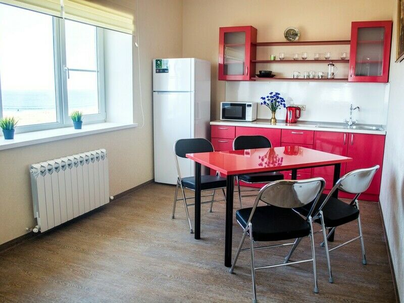 Отель находится в 7-9 минутах ходьбы от моря и в шаговой доступности от магазинов (большой магнит, пятерочка и много др..) и столовых. Также на территории отеля есть общая кухня , которая оборудована новой техникой: две газовые плиты , большой холодильник и есть вся необходимая посуда для приготовления еды. В зоне приема пищи работает кондиционер, все всегда было безупречно чисто. В номерах есть очень понятный в эксплуатации кондиционер, электрический чайник , маленький холодильник и большой плазменный телевизор.