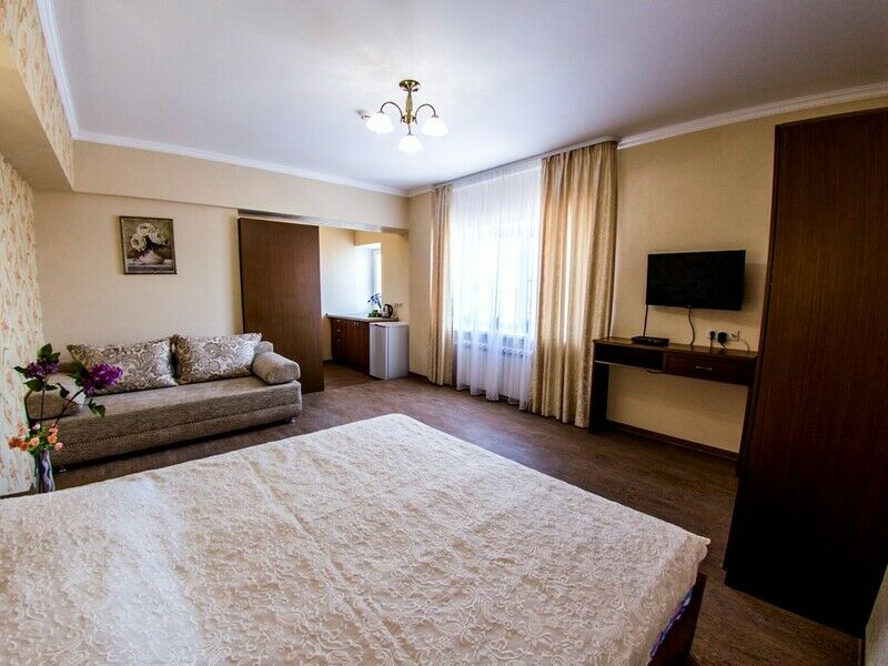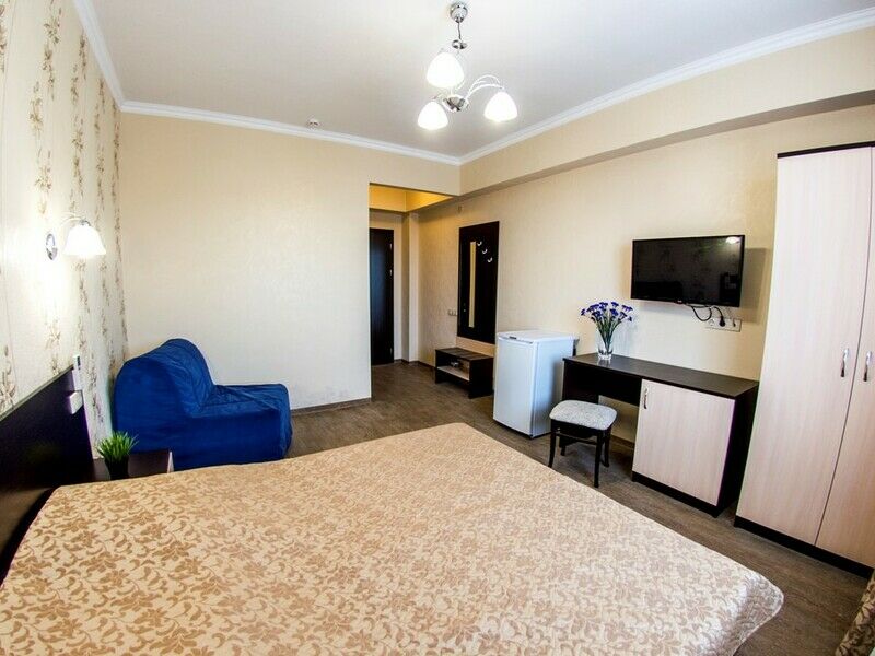 Путешествие с семьейОтличный отдыхНикогда не писала отзывы, но об этом месте не могу не написать. Очень хорошее уютное место. С самого начала и до выезда пребывали в полном восторге. Номера чистые современные. Один только вид на море чего стоит. Мы были с детьми и то что есть бассейн это просто супер. Дети из него не вылазили, да и мы тоже. Ограничений по купанию никаких не было. То что при гостинице есть столовая это было просто мега удобно! И оочень вкусно кормят и много. Окрошечка просто огонь! Детям на выбор и первое и десерт. Завтраки вкусные сытные. Ужин тоже очень всё вкусно. Мы жили семь дней. На третий день нам уже заменили бельё. Уборка каждые два дня. В самой гостинице есть магазин с продуктами, что очень удобно. А уж то что был бесплатный трансфер до моря аж пять раз в день..так это вообще шикарно. Вообщем мы очень довольны!и ещё раз приехали бы сюда обязательно!