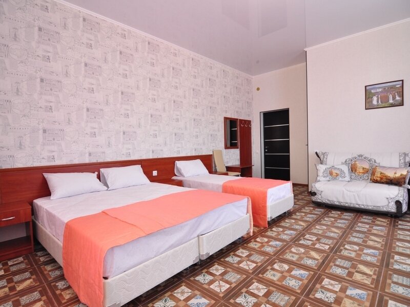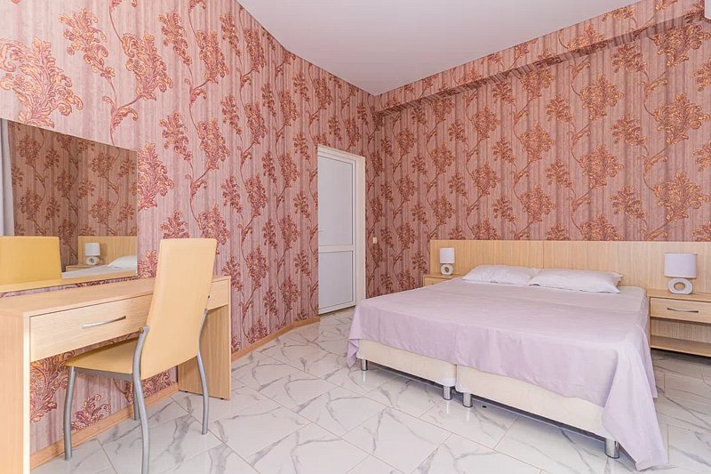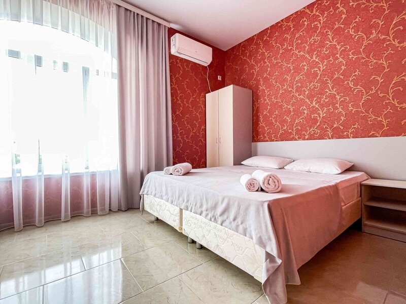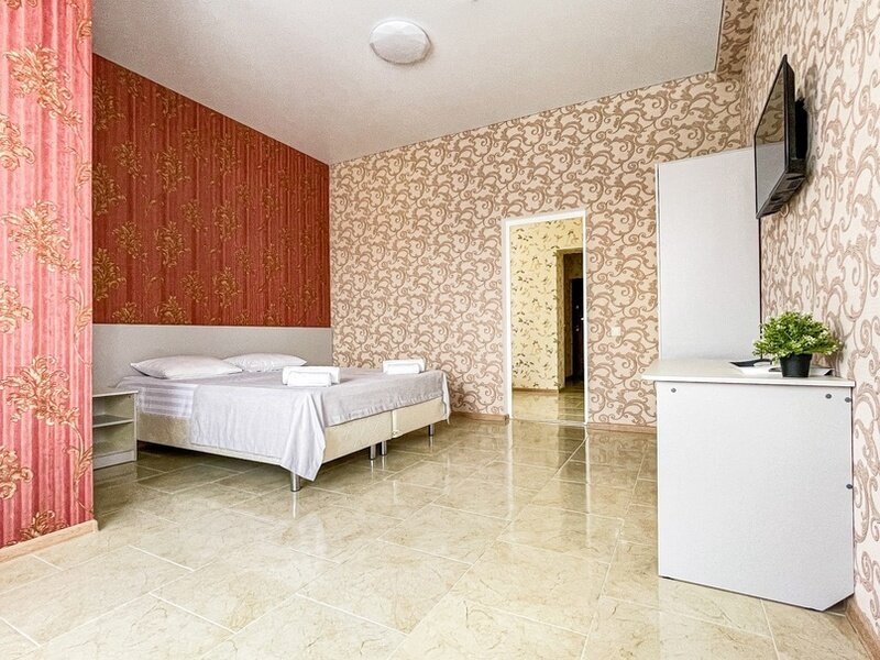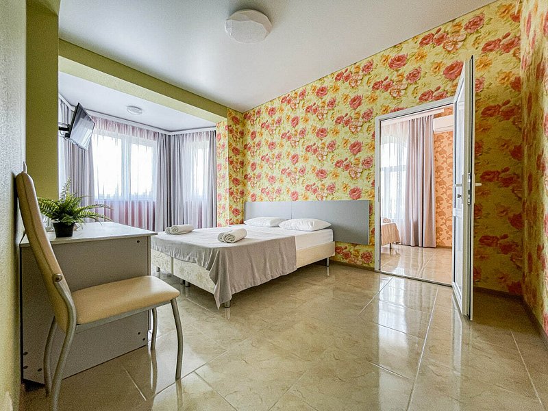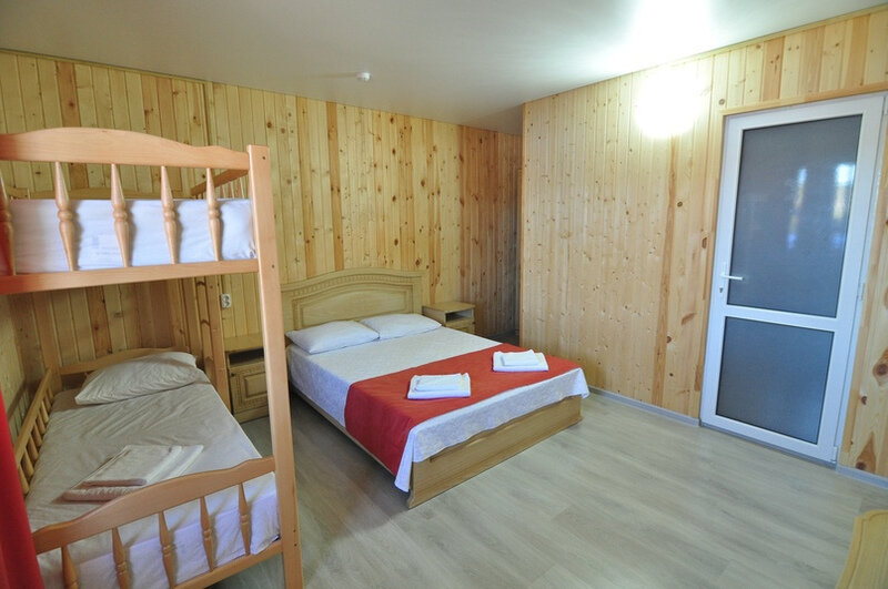Номер с отдельным входом, площадью 25 м². В номере — одна двуспальная кровать и одна двухъярусная кровать размером 160х70, кондиционер, шкаф, телевизор, мини холодильник, зеркало (возможно доп. место платно). В номере также есть собственный сан. узел с душевой кабинкой. В стоимость номера входит бесплатное пользование Wi-Fi.