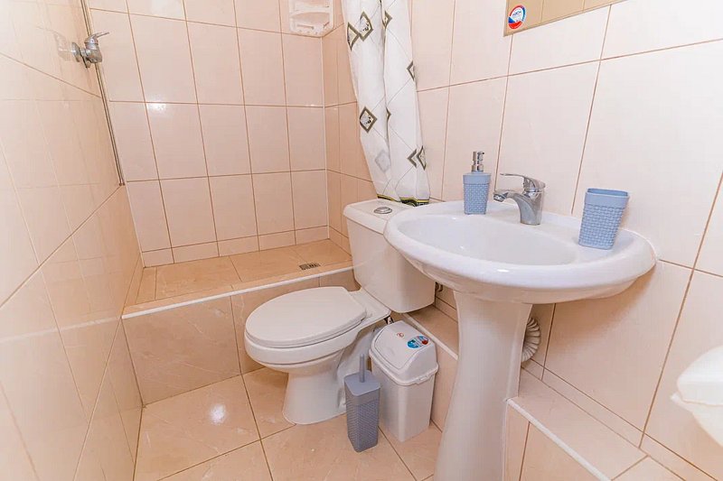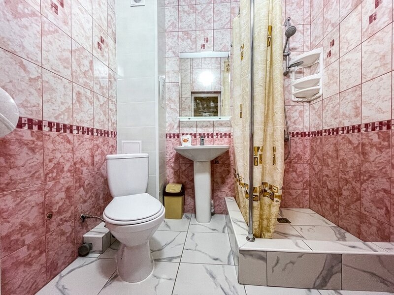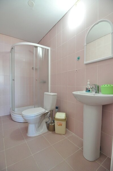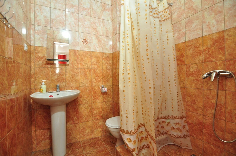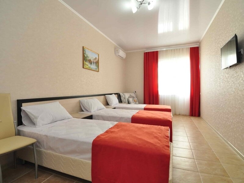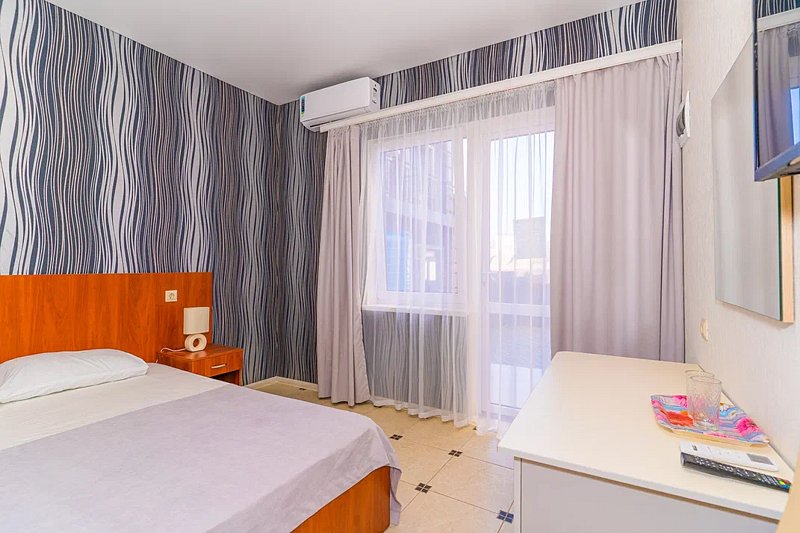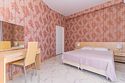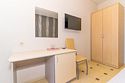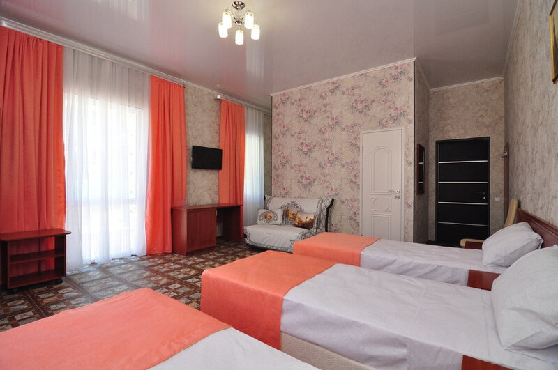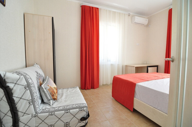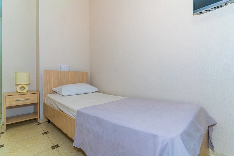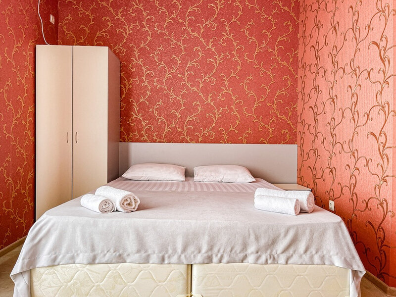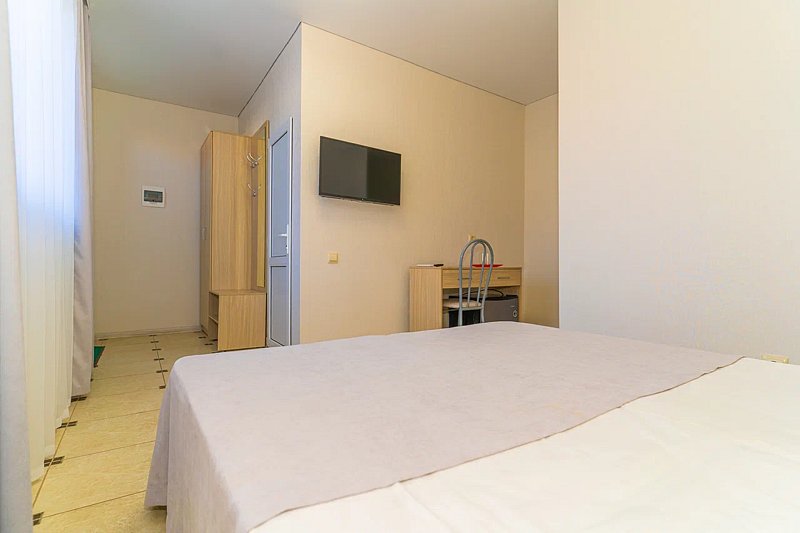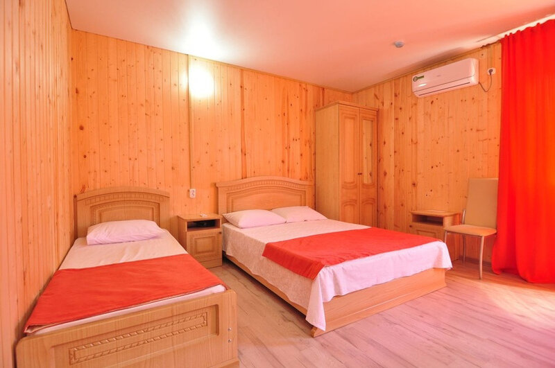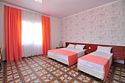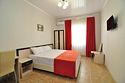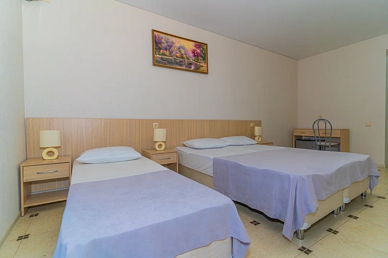 Номер площадью 22 м². В номере - 1 отдельная кровать и одна двуспальная кровать, кондиционер, шкаф, телевизор, мини холодильник, зеркало. В номере также есть собственный сан. узел с душевой кабинкой. В стоимость номера входит бесплатное пользование Wi-Fi.