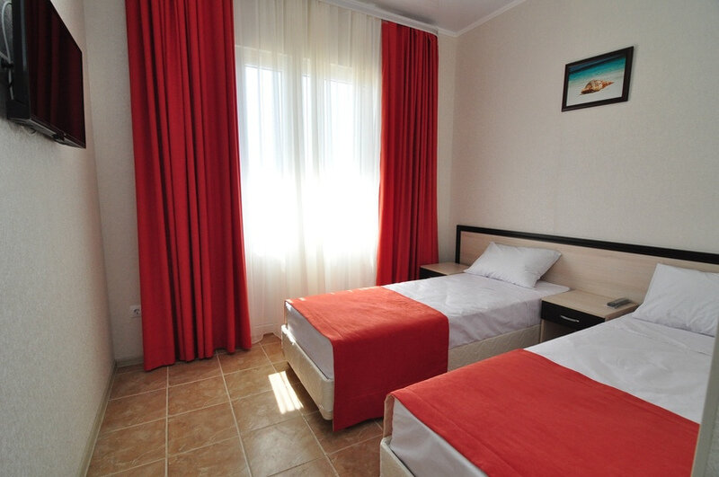 Номер площадью 22 м². В номере — 3 отдельные односпальные кровати (возможно доп. место платно), кондиционер, шкаф, телевизор, мини холодильник, зеркало. В номере также есть собственный сан. узел с душевой кабинкой. В стоимость номера входит бесплатное пользование Wi-Fi.