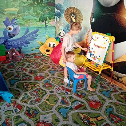 Есть кухня для самостоятельного приготовления пищи, где вы можете приготовить себе и деткам, что хотите. И холодильник.