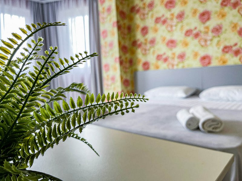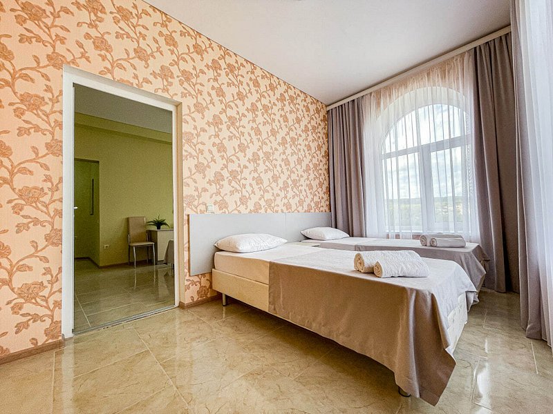 Двухкомнатный номер площадью 22 м². В номере — 2 отдельные кровати и одна двуспальная кровать (возможно доп. место платно), кондиционер, шкаф, телевизор, мини холодильник, зеркало. В номере также есть собственный сан. узел с душевой кабинкой. В стоимость номера входит бесплатное пользование Wi-Fi. Номер для некурящих.