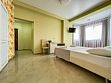 Номер площадью 41 м². В номере - 2 отдельные односпальные кровати, две двуспальные кровати (возможно доп. место платно), кондиционер, шкаф, телевизор, мини холодильник, зеркало. В номере также есть собственный сан. узел с душевой кабинкой. В стоимость номера входит бесплатное пользование Wi-Fi.