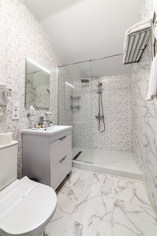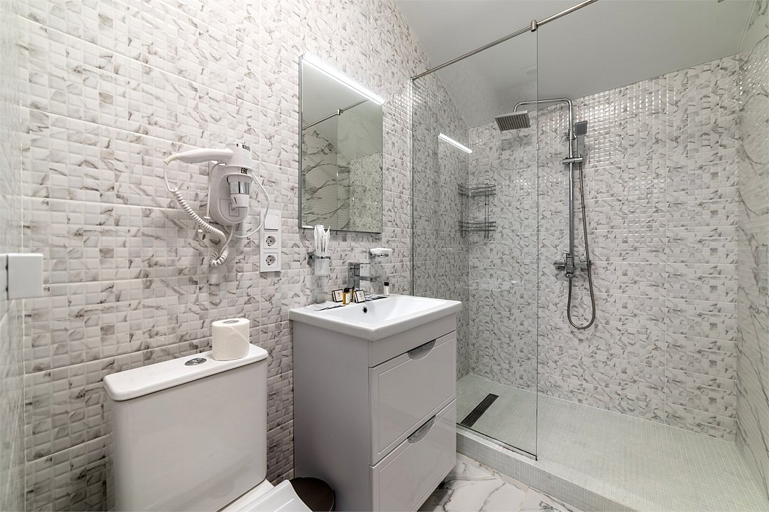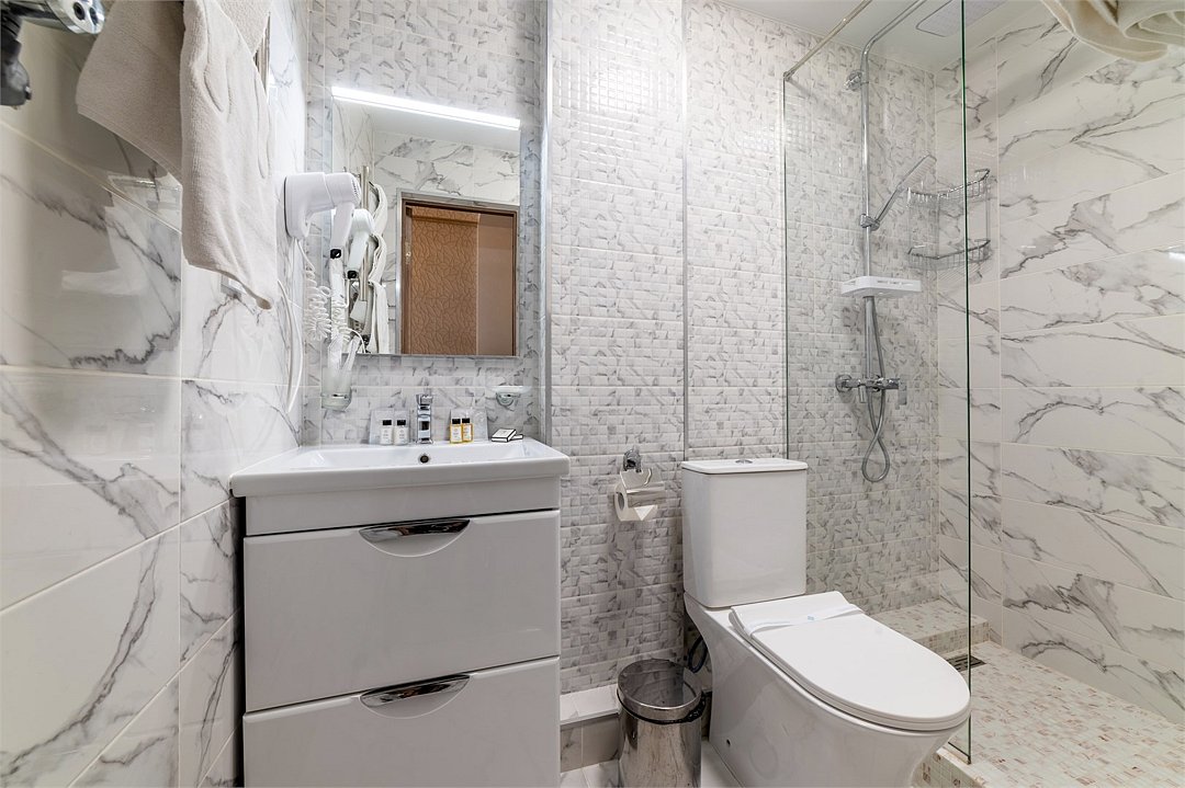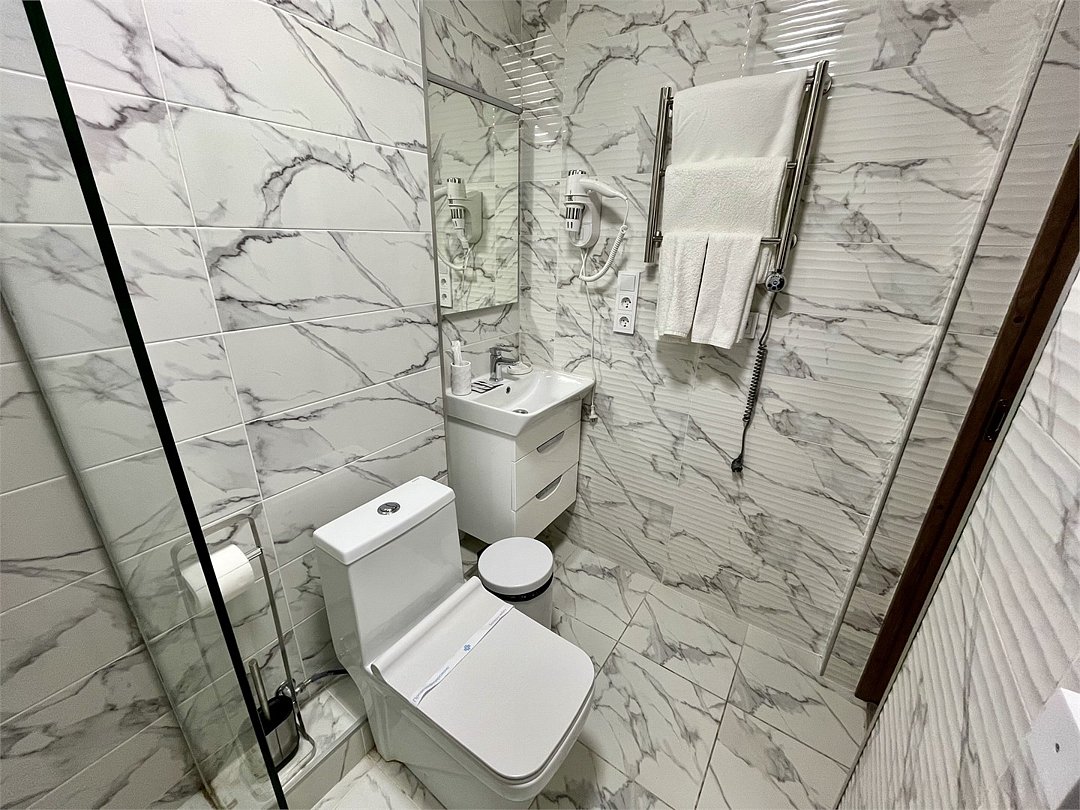 Wi-Fi, холодильник, фен, электронные замки, душевая кабина, санузел, теплый пол, банные принадлежности, халаты, двуспальная кровать, тумбы, письменный стол, звуконепроницаемые стены и окна, чайный набор, обслуживание номеров, чайник, отопление, вид на город, кулер на этаже, кресло, вид во двор, ламинат, стул, туалетные средства, цифровое тв, москитная сетка, шкаф-купе, гостиничная парфюмерия, телевизор со Smart TV, теплые полы, номер для некурящих, кресло-кровать, чайная станция, уборка номера, туалетные принадлежности премиум-класса, вешалки-плечики, мыло, затемняющая штора, можно с питомцамиВ гостиничном номере