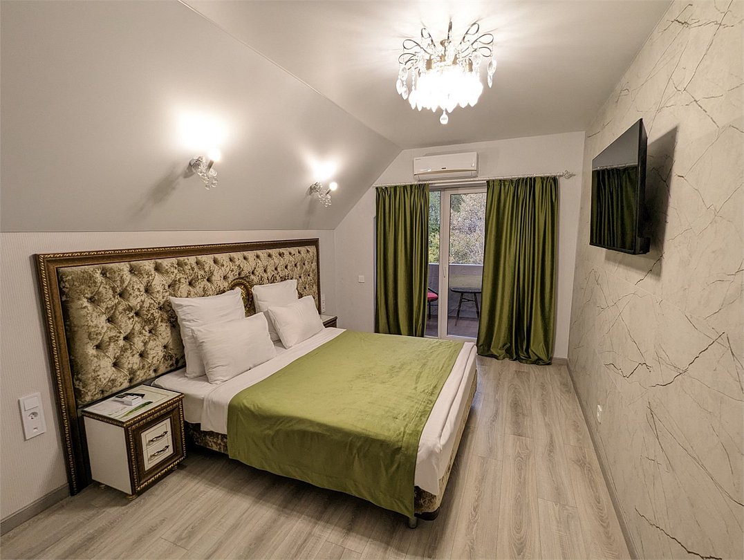 Уютный номер “Комфорт” с роскошной королевской кроватью. Оснащен современной душевой кабиной, телевизором со Smart TV и всем необходимым для комфортного проживания. К услугам гостей удобная мебель, ортопедическое спальное место и премиальное постельное белье.Услуги и удобства