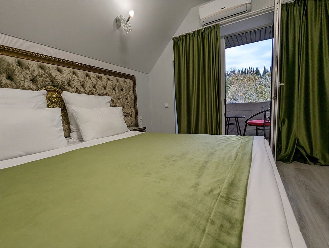 Номер повышенной комфортности для 1-4 гостей. Кровать и диван. Отличается увеличенной площадью номера.Услуги и удобства