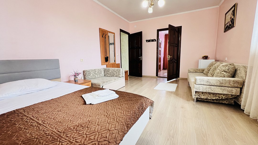 В гостевом доме для гостей доступны номера различной комфортности и вместимости от Эконом до Семейного. Каждый номер оборудован кроватями, шкафом, телевизором, кондиционером, мини-холодильником.