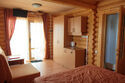 ТВ+спутниковая тарелка, с/у с душевой кабиной, унитазом, гор/хол вода в системе (питьевая) постоянно, сплит холод/тепло, кухонная зона с холодильником, чайником и столом, шкаф для одежды, большая терраса с мебелью