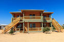 База отдыха ограждена от полуострова сосновым лесом. С обеих сторон простираются чистые оборудованные ракушечные пляжи теплого Азовского моря. Это идеально подходящее место для семейного отдыха и тех, кто мечтает пройти обучение виндсерфингу и кайтсерфингу и получить удовольствие от скольжения по волнам.