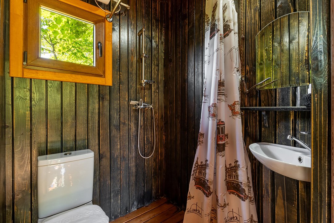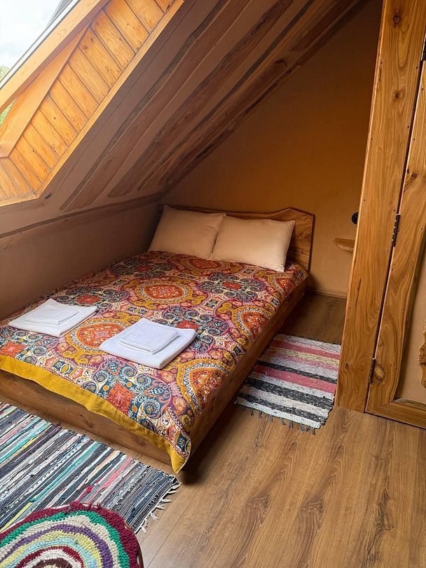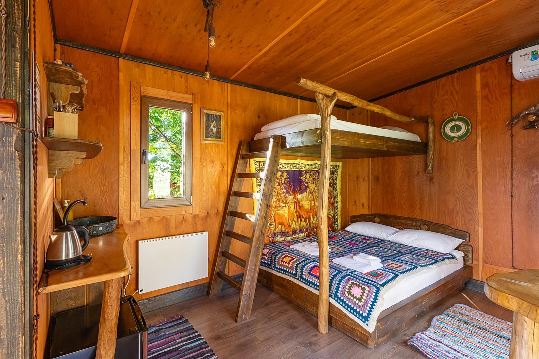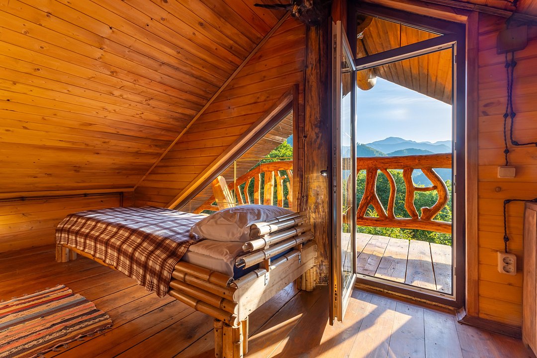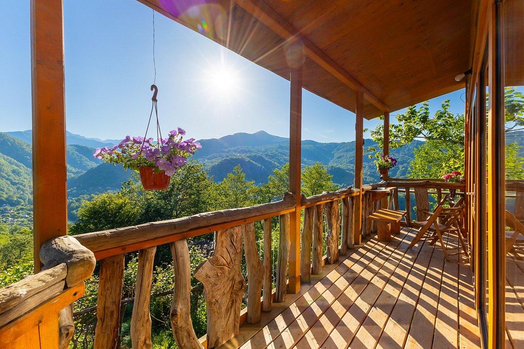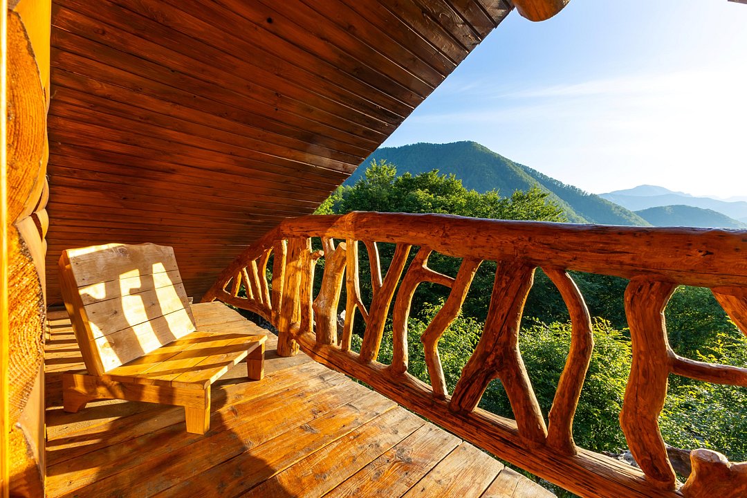 Уединенный домик подойдет для влюбленных или молодой семьи. Здесь можно насладиться тишиной и встречать восходы с чашкой ароматного чая или крепкого кофе на личной террасе.