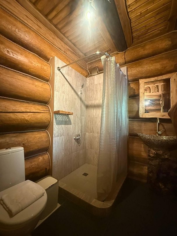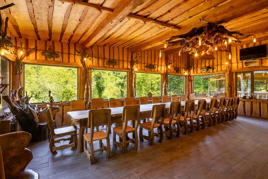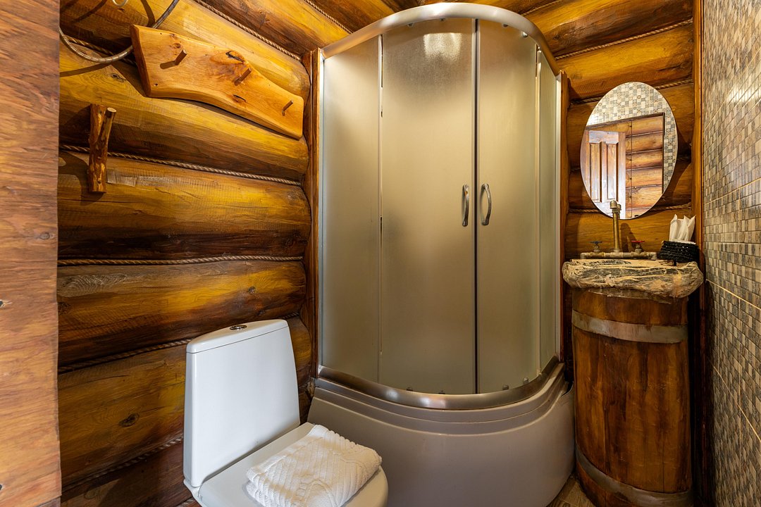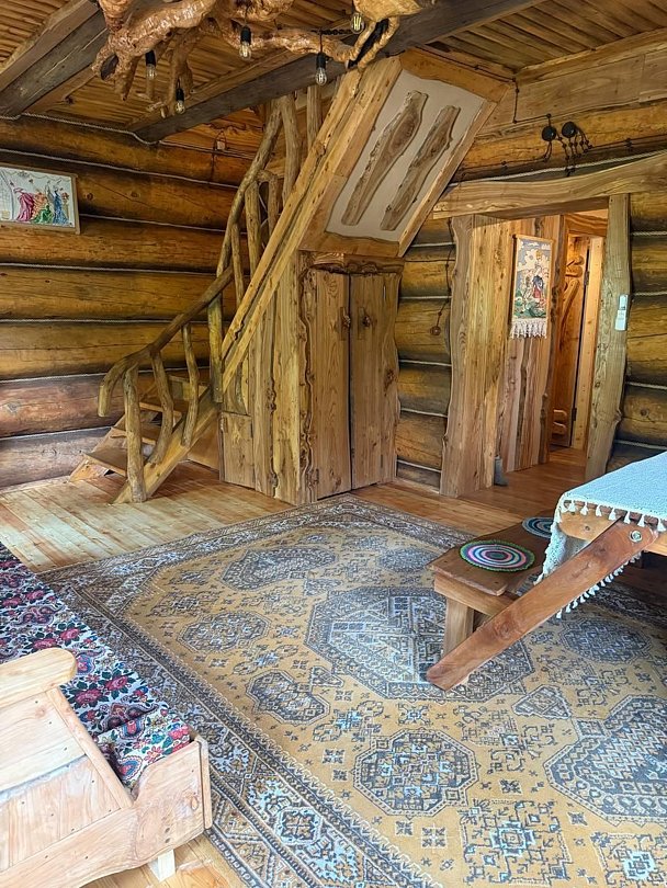 Просторный и уютный дом, выполненный из сруба, идеально подходит для отдыха большой семьи или компании друзей. Эксклюзивная мебель из массива дерева ручной работы придаёт особый шарм и атмосферу уюта.