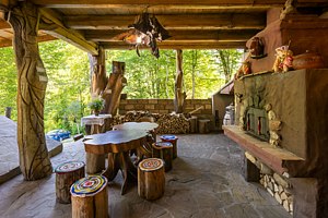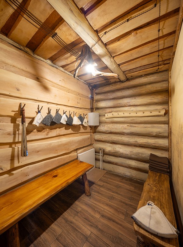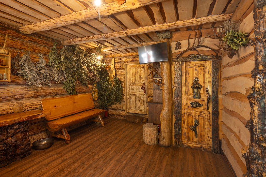 На территории есть каминный зал с раритетной мебелью, мангальный двор, беседка и открытая веранда для больших компаний, где можно отужинать блюдами молдавской, русской и казахской кухонь. Также оборудована баня с родником бассейном и дровяным чаном для парения под открытым небом, где действуют индивидуальные и групповые банные программы.
