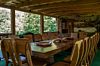 На открытой веранде можно провести детский праздник, девичник или мальчишник, небольшое семейное торжество. До 15 человек. Только представьте, прекрасный вид на горы и свежий воздух, который хочется пить, вокруг леса и слышно пение птиц. По желанию веранду можно украсить цветами и текстилем, шарами. Персонал поможет с поиском аниматора или ведущего. Время аренды с 11:00 до 23:00.