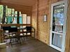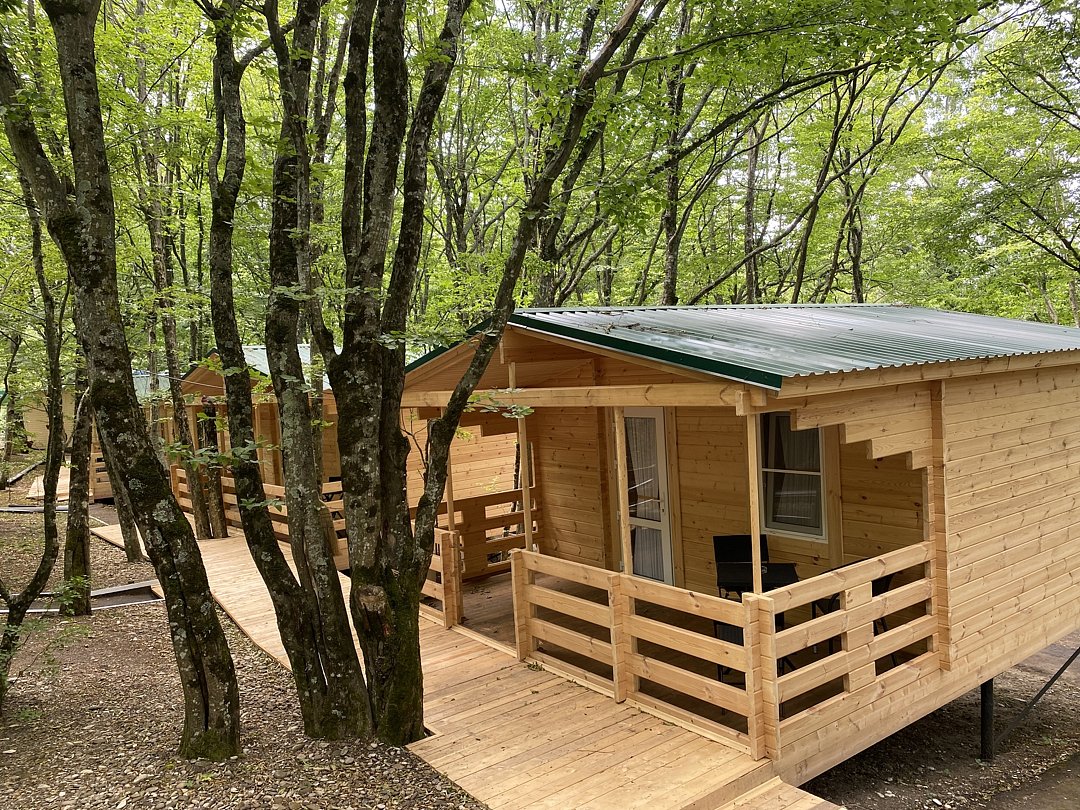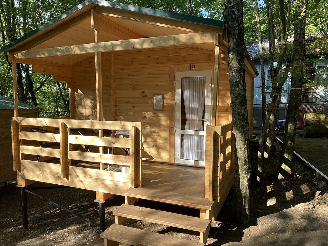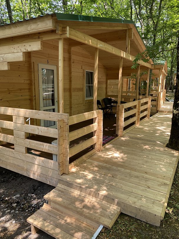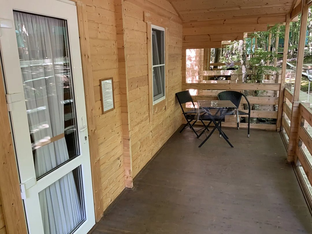 Уютный ЭКО-домик Премиум Комфорта с собственным санузлом и террасой. Удобная двуспальная кровать. Отдельная односпальная кровать. Прикроватные тумбочки. Шкаф для вещей. Современный телевизор. Стильный кофейный столик. Холодильник. Электрический чайник с набором чашечек. Просторная душевая кабина с тропическим душем. Унитаз. Раковина. Полотенце банное для лица, для рукю Климат контроль сплит система.