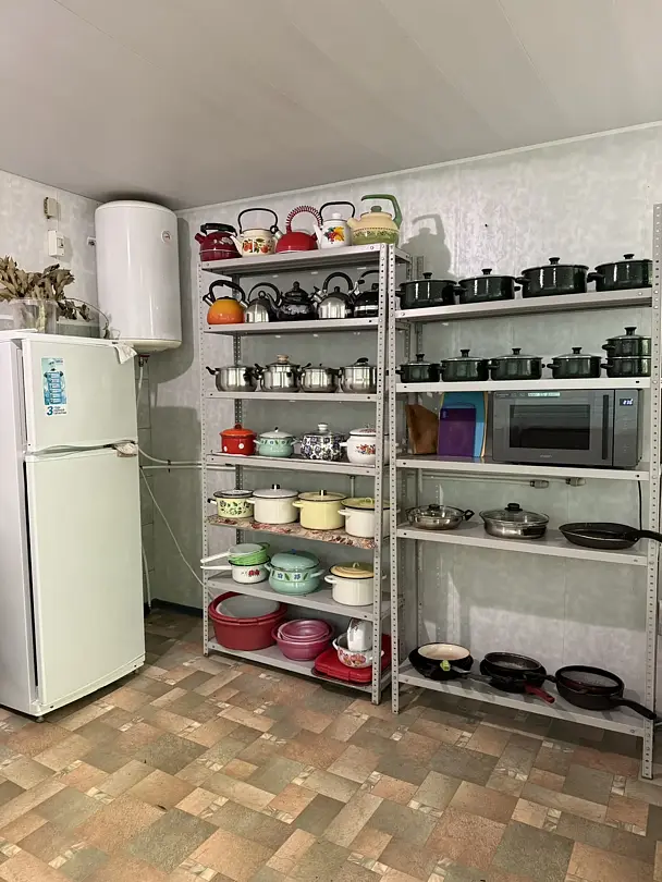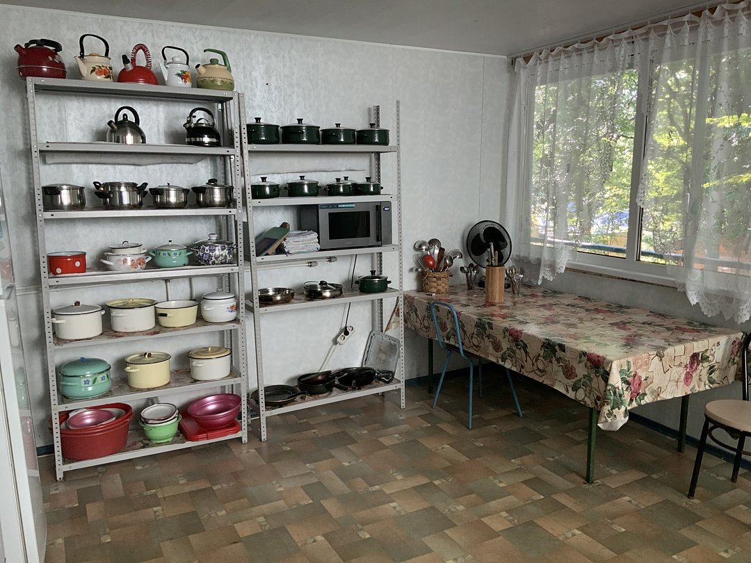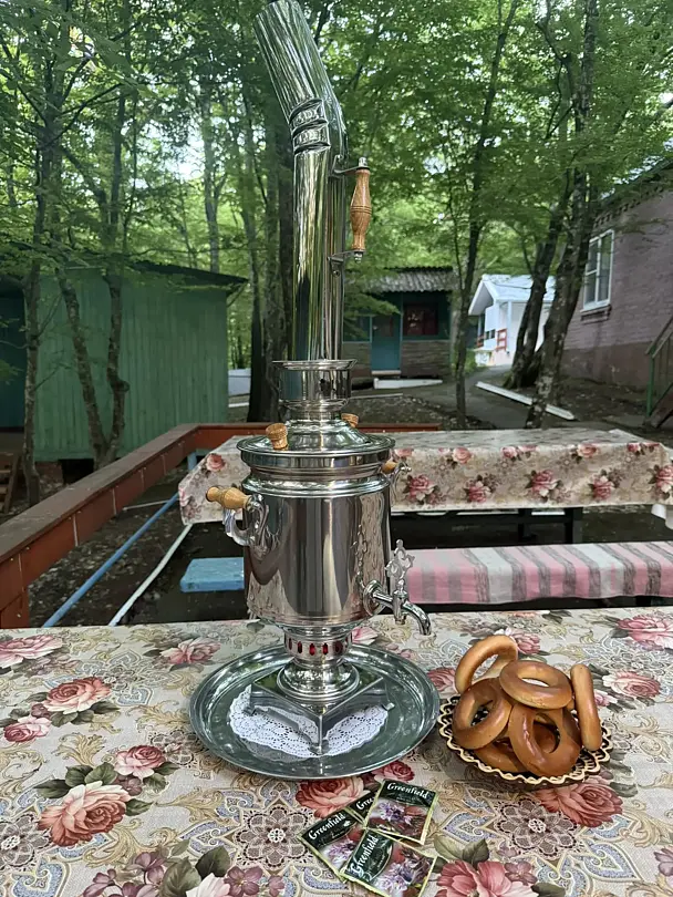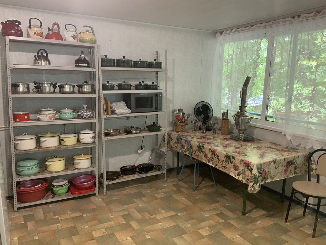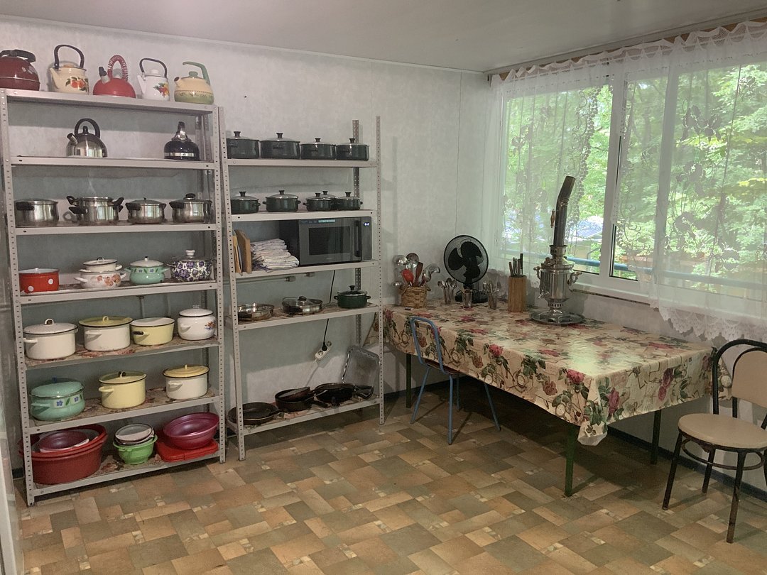 Инфраструктура базы включает просторную кухню, оборудованную всем необходимым для самостоятельного приготовления пищи, бесплатную автостоянку в тени, круглосуточный горячий душ, Wi-Fi оптоволокно, площадку с мангалами для приготовления шашлыка, самовар на углях, телевизор, караоке, ретро библиотеку с уникальными зданиями, стиральную машину, утюг.