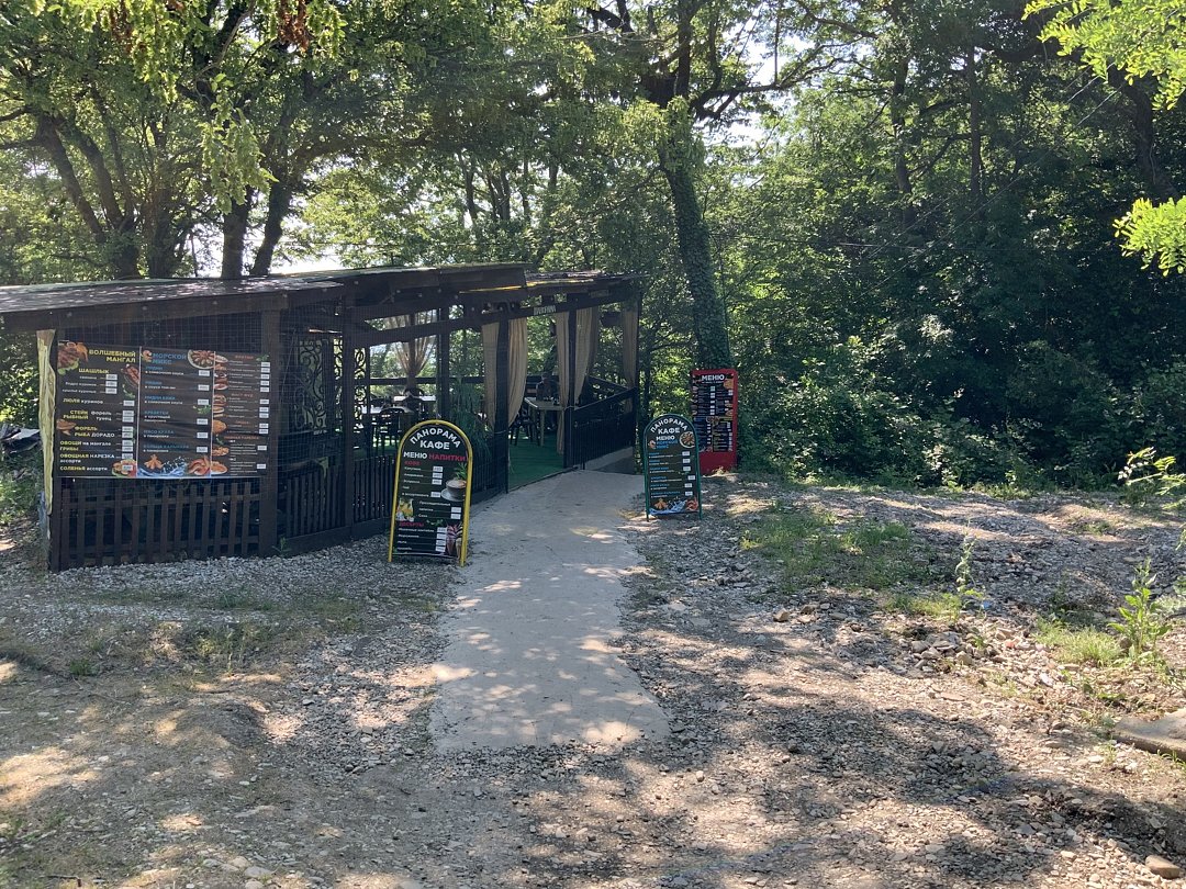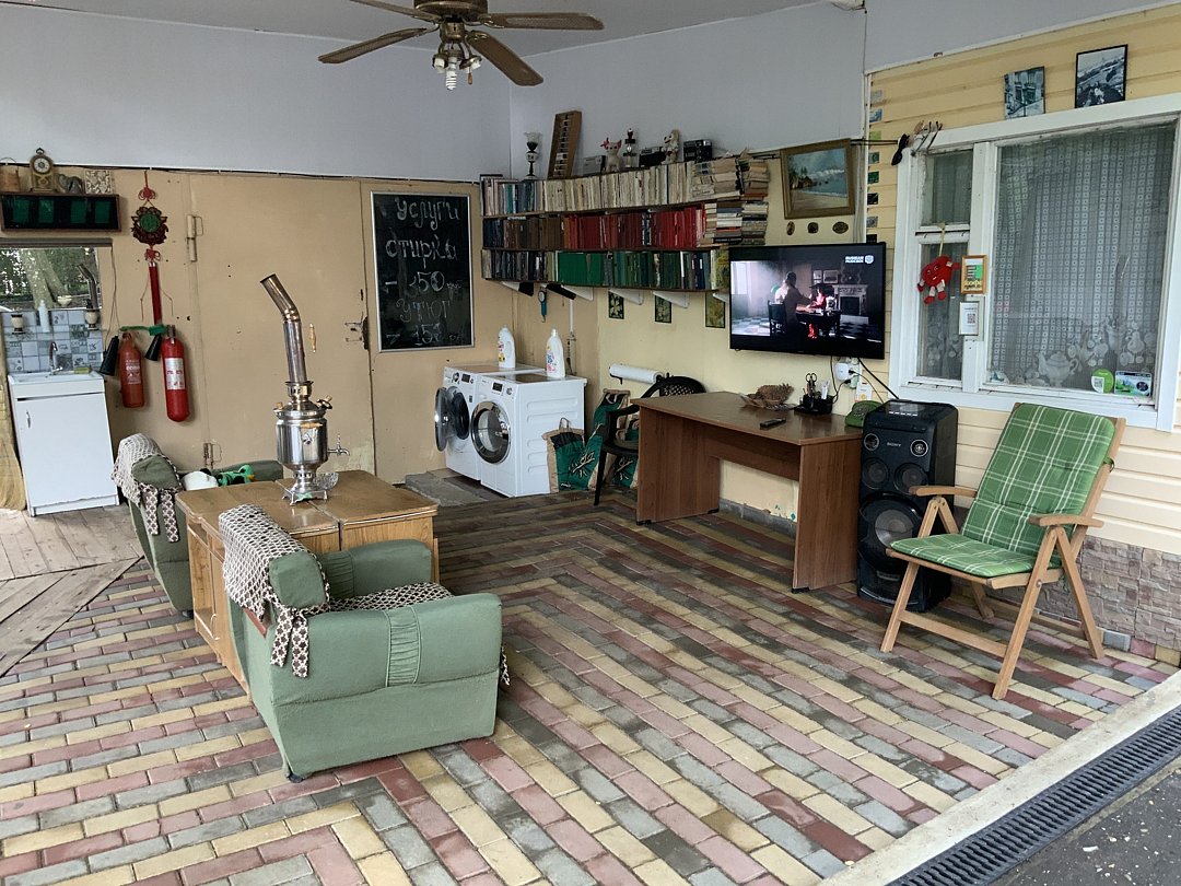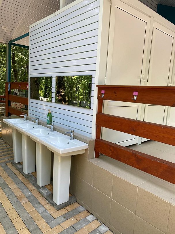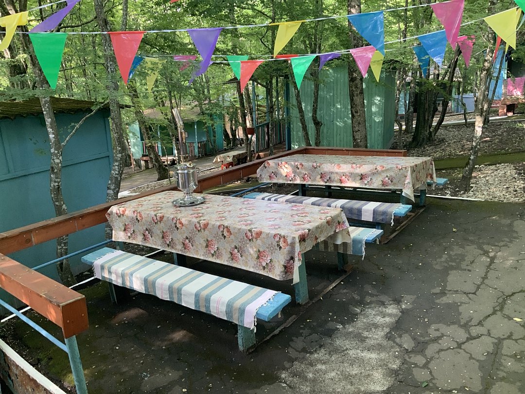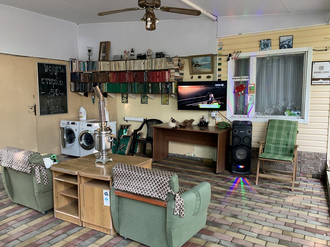 Инфраструктура базы включает просторную кухню, оборудованную всем необходимым для самостоятельного приготовления пищи, бесплатную автостоянку в тени, круглосуточный горячий душ, Wi-Fi оптоволокно, площадку с мангалами для приготовления шашлыка, самовар на углях, телевизор, караоке, ретро библиотеку с уникальными зданиями, стиральную машину, утюг.