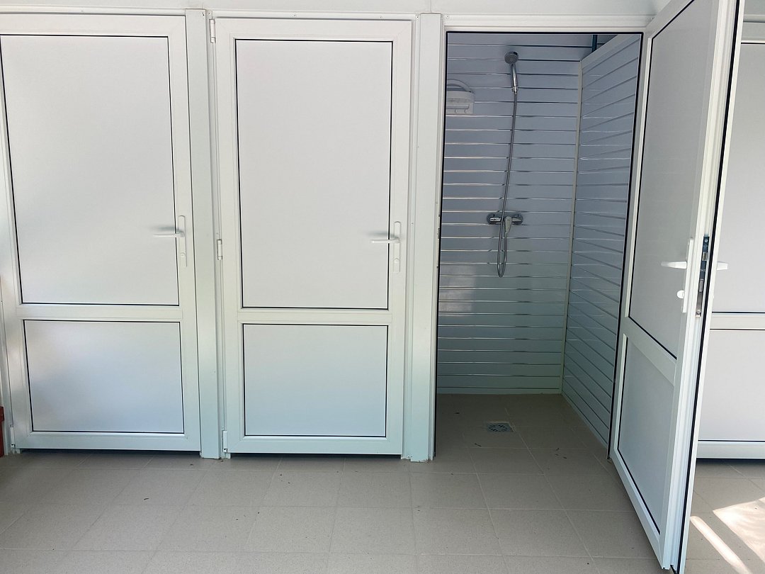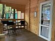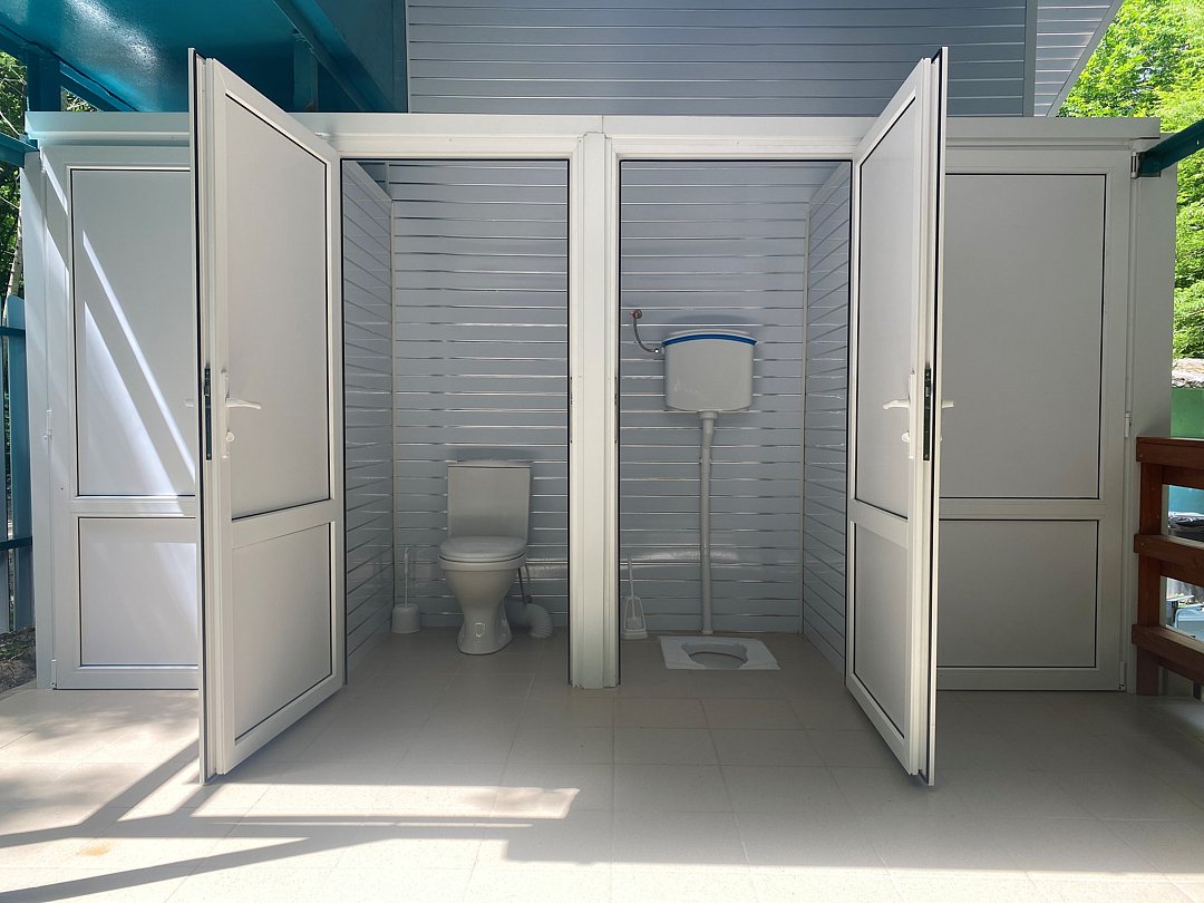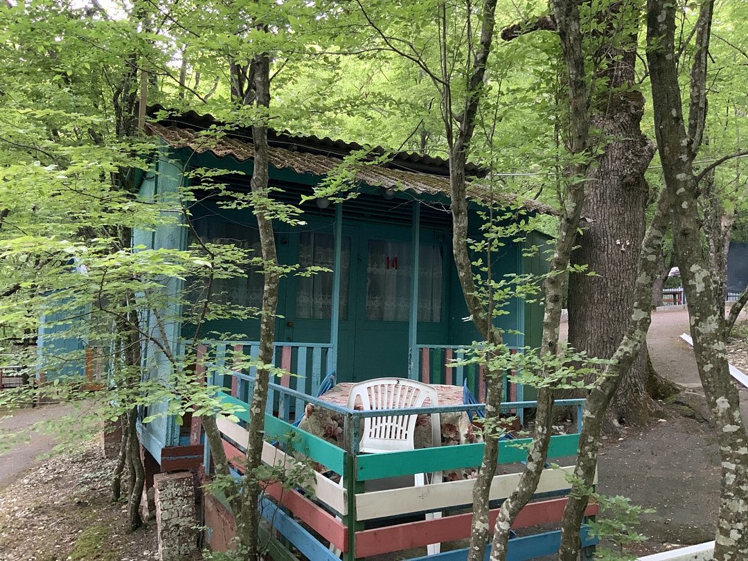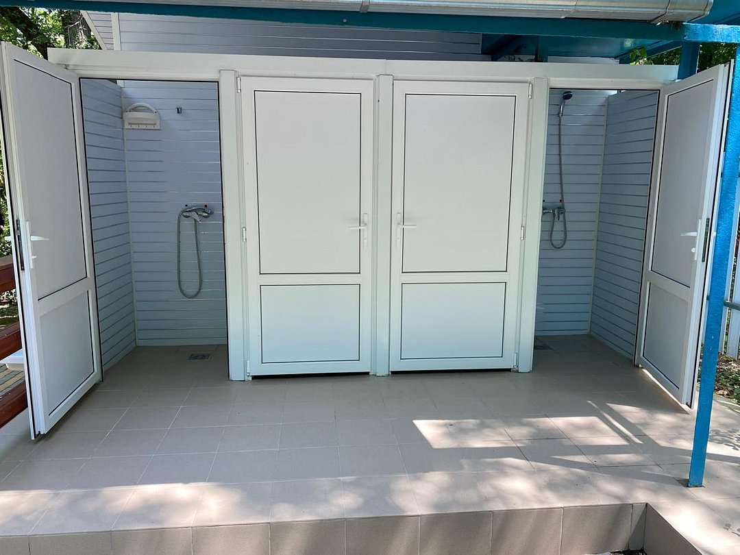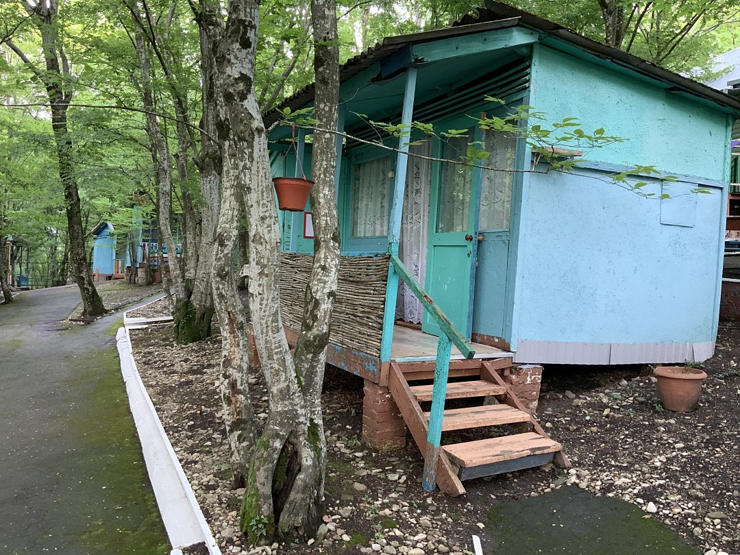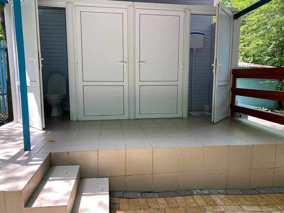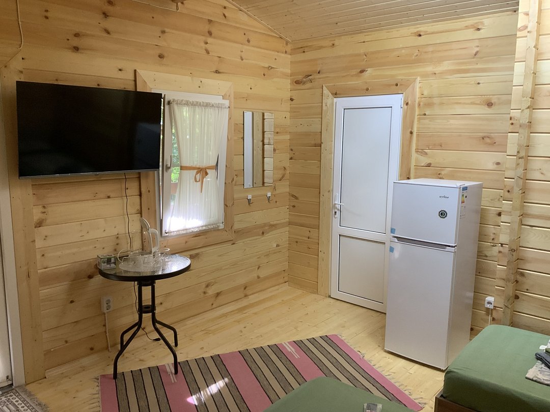 Уютный ЭКО-домик Премиум Комфорта с собственным санузлом и террасой. Удобная двуспальная кровать. Отдельная односпальная кровать. Прикроватные тумбочки. Шкаф для вещей. Современный телевизор. Стильный кофейный столик. Холодильник. Электрический чайник с набором чашечек. Просторная душевая кабина с тропическим душем. Унитаз. Раковина. Полотенце банное для лица, для рук. Климат контроль сплит система.