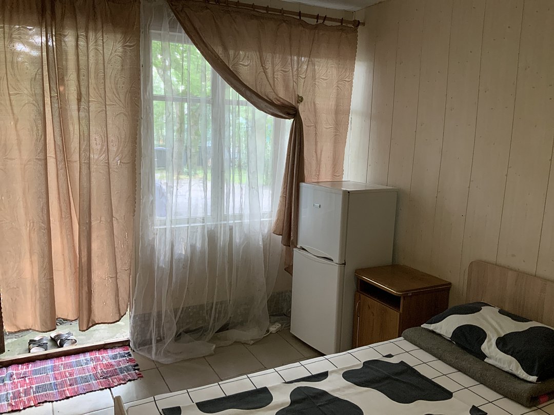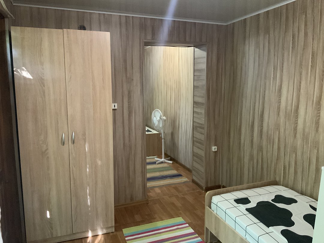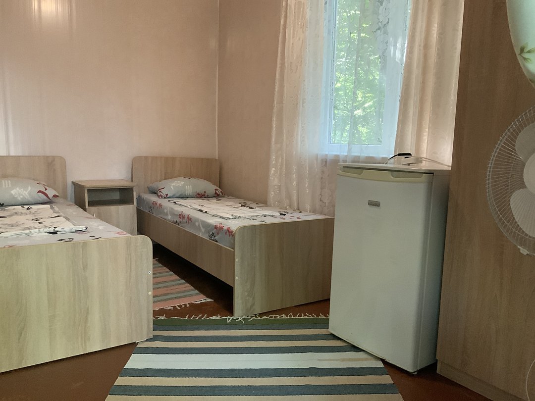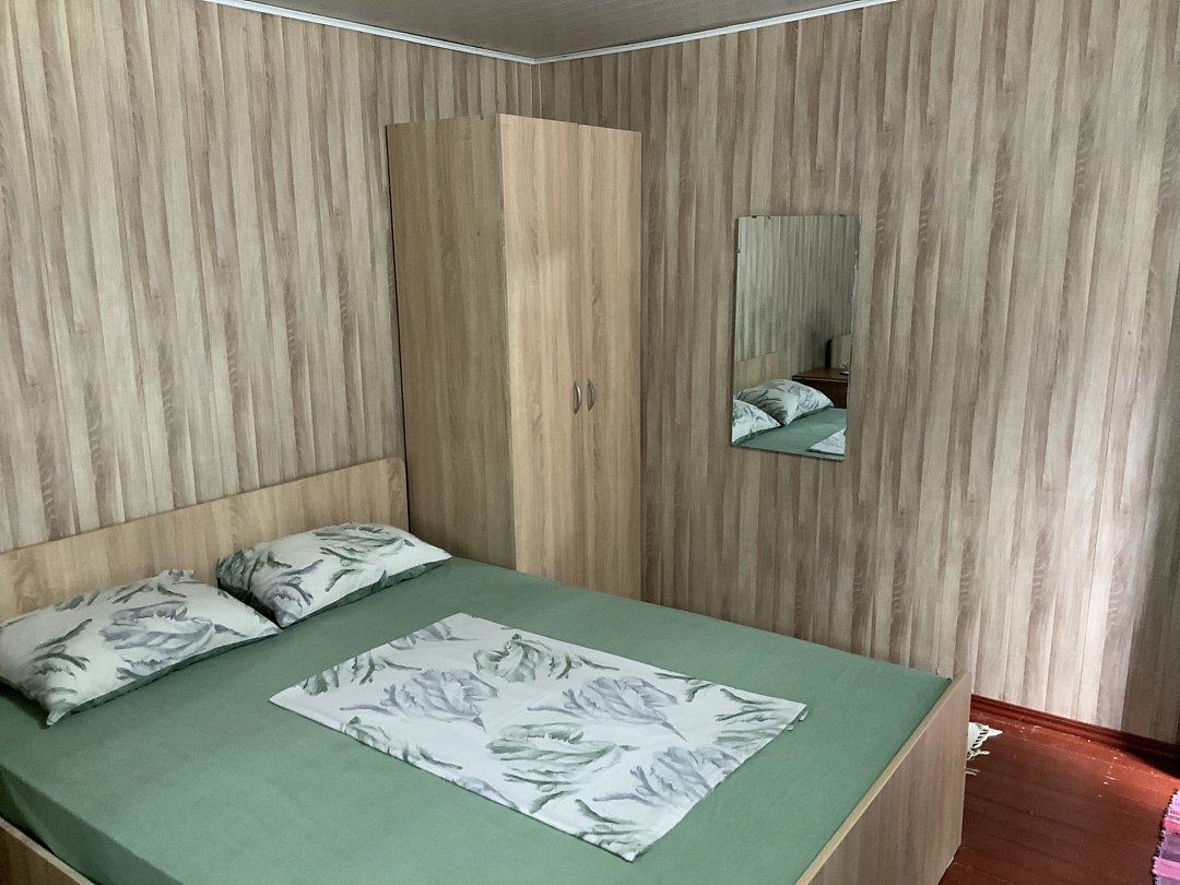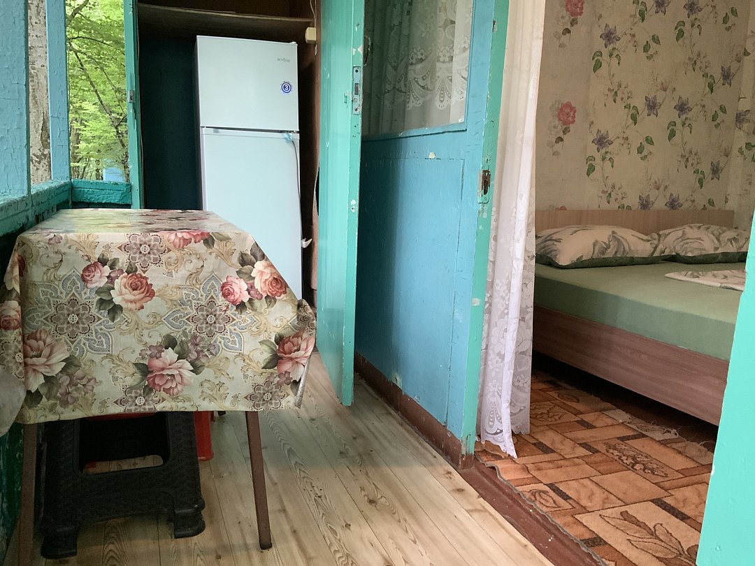 Все продуманно для проживания небольшой семьи, ничего лишнего. Комфортная двуспальная кровать и отдельная односпальная кровать. Прикроватные тумбочки. Освежающий вентилятор. Холодильник. Практичный столик, стулья. Собственная небольшая терраса.