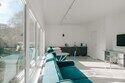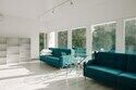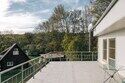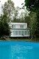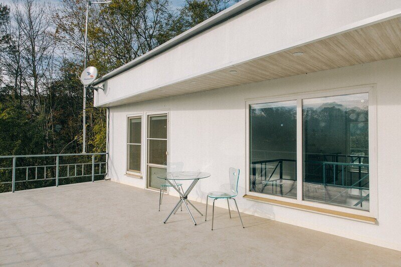 Имеет минималистичный дизайн и безмятежную атмосферу благодаря панорамным окнам во всю стену на первом этаже и выход на террасу с видом на лес и озеро.