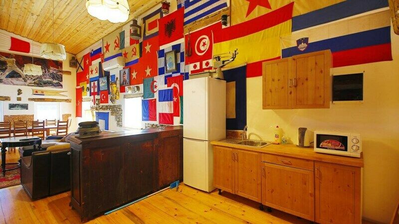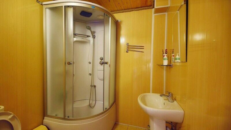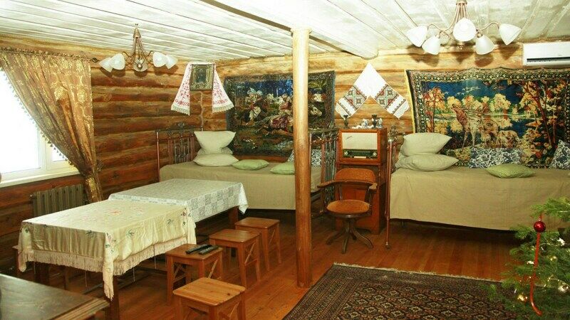 Короткий отпуск с друзьямиВсе классно!Ездили сюда на выходные со своей компанией! Нас было 12 человек, взяли дом моряка)) Дети были в восторге, очень было интересно все разглядывать! В комнатах нормально, чистое белье, полотенца. в ванной конечно без изысков, достаточно все просто. Но есть зубные щетки в наборе, гель для душа и шампунь) мы конечно своё все взяли, но было приятно. тапочки ещё дают одноразовые. На территории сходили на небольшое озеро с рыбками, вода конечно мутноватая, но рыба мелкая ловится!) детям такая рыбалка понравилась)) мы попросили еще показать другие дома, но был свободен только мосфильм и дом Охотника. Достаточно все уатентично и необычно) в Охотнике очень много разных настоящих чучел из животных.